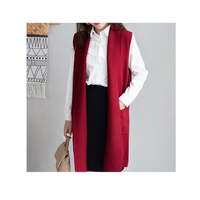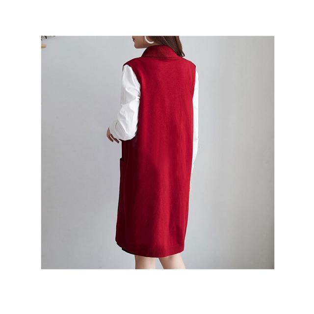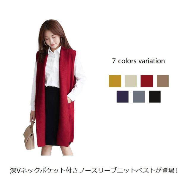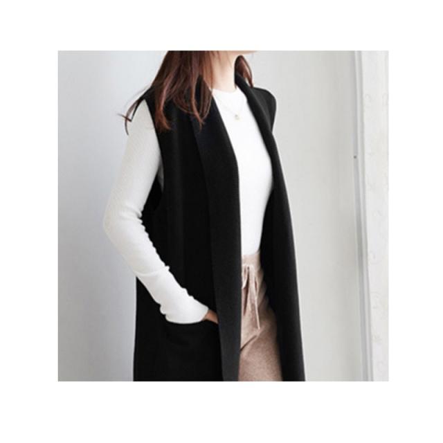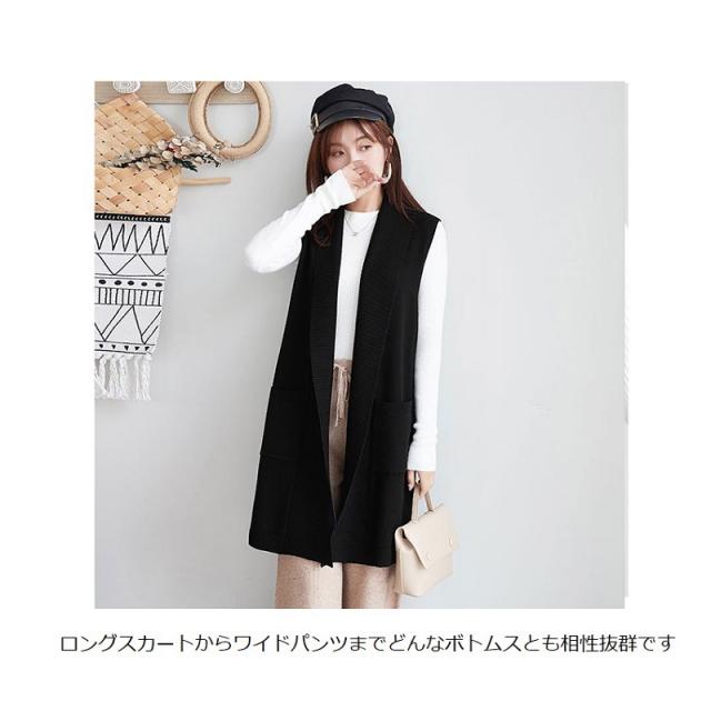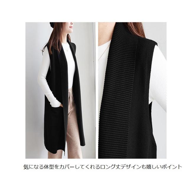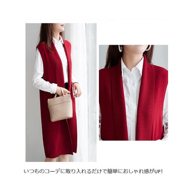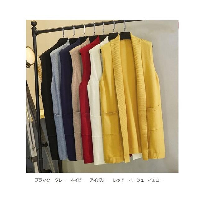 2022新作 レディース 大人 トップス 前開き ベスト ロング丈 ロングジレ アウター サマージャケット ニットベスト 羽織 お洒落 上品 かっこいい 体型カバー 体型隠し オフィス カジュアル 通勤 OL