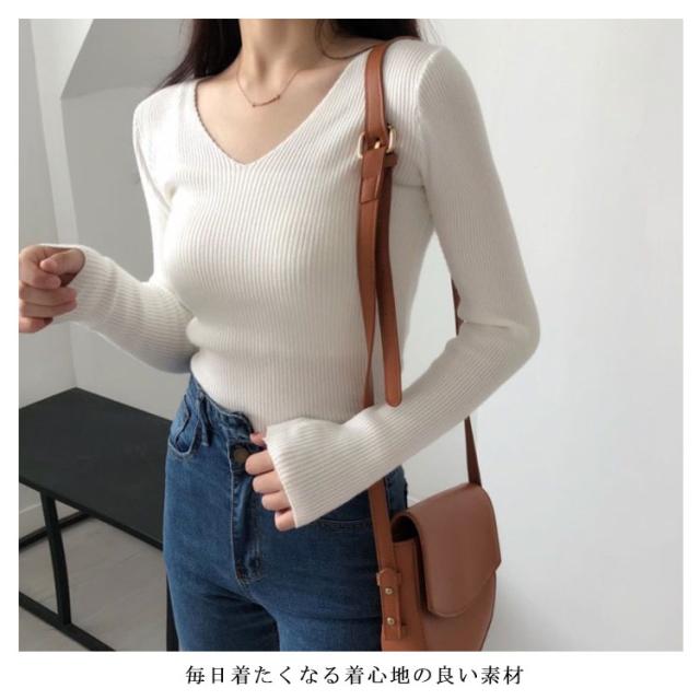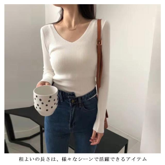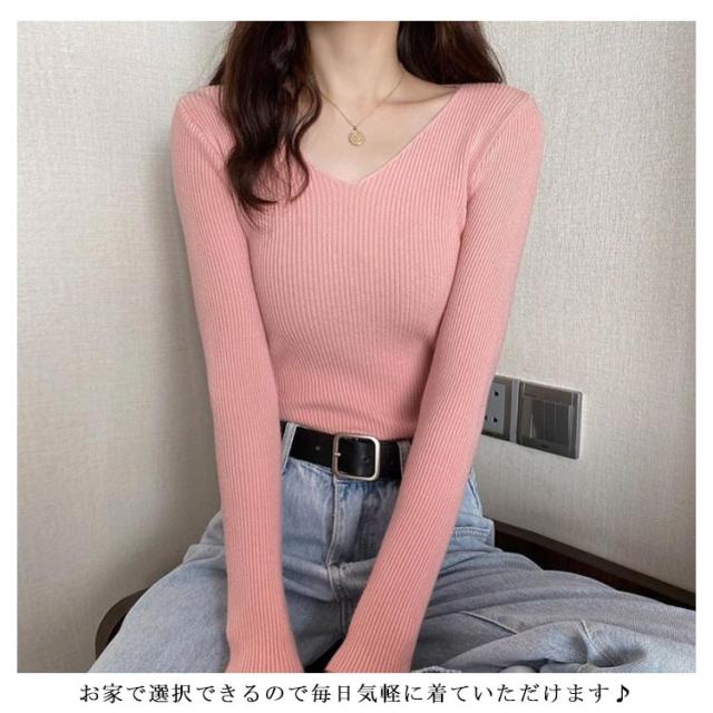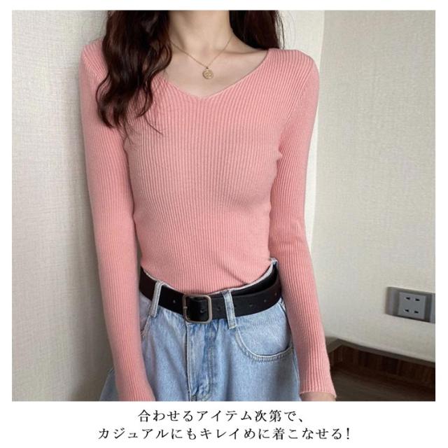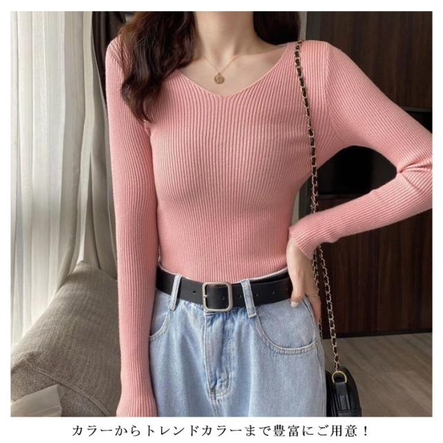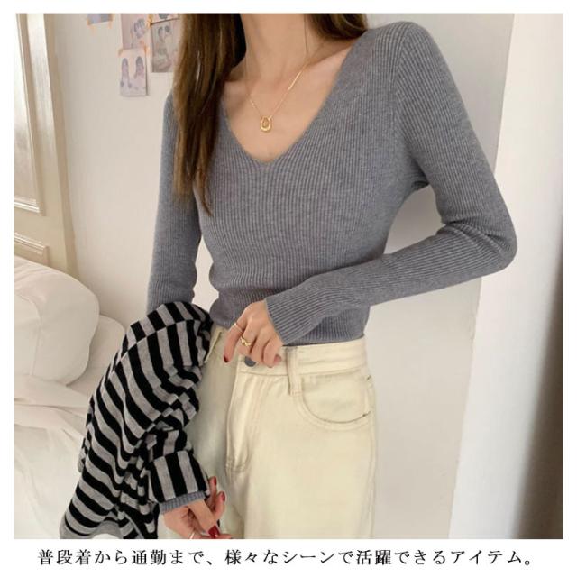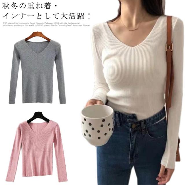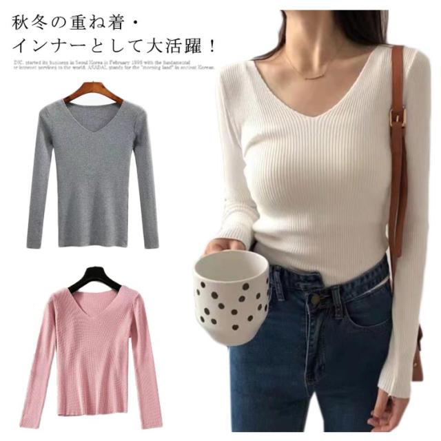 ニット 長袖カットソー レディース Vネック ネックカットソー インナートップス ニットカットソー 長袖 大きいサイズ 無地カットソー レディース Tシャツ ロンT 秋冬の重ね着 送料無料