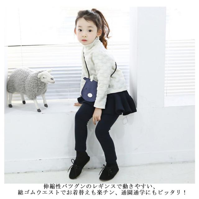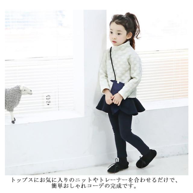 | スカートとレギンスが一体となっており、これ一枚で履いていただけます。 伸縮性バツグンのレギンスで動きやすい、 総ゴムウエストでお着替えも楽チン、通園通学にもピッタリ! トップスにお気に入りのニットやトレーナーを合わせるだけで、簡単おしゃれコーデの完成です。 通園、通学や休日のお出かけなど幅広く使って頂けます。 | |