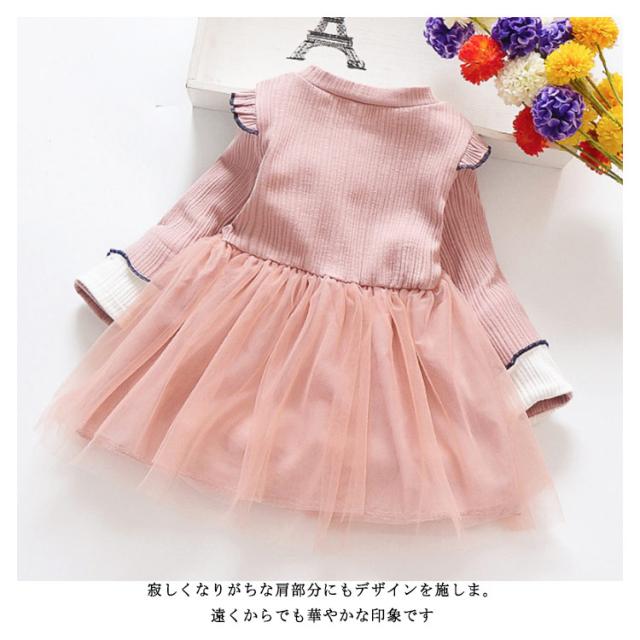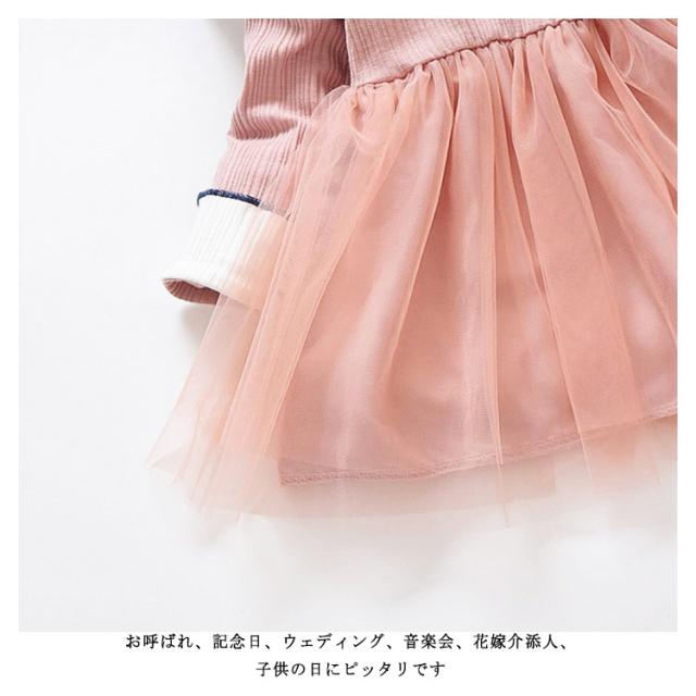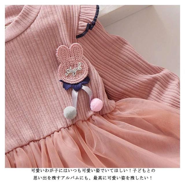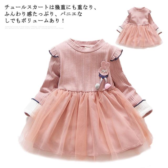 チュール ワンピース キッズ 長袖 ワンピース チュールドレス チュールスカート チュチュスカート 長袖ワンピ 切り替え ベビー服 女の子 ウサギ 入学式 発表会 結婚式 ピンク 80 90 100 110 120 130