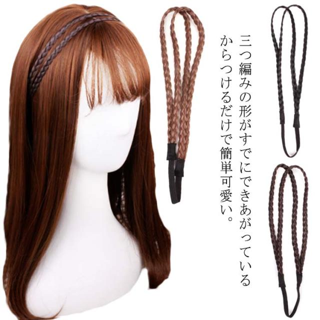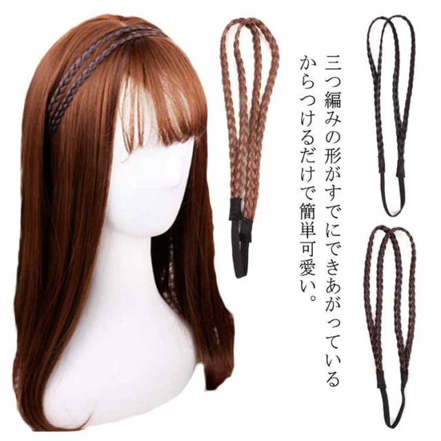 【送料無料】三つ編み ヘアバンド ウィッグ ヘアゴム 三つ編みウィッグ カチューシャ風 ウィッグゴム 簡単アレンジ エクステ ポイントウィッグ つけ毛 毛束 部分ウィッグ ヘアバンド カチューム ヘアアクセサリー