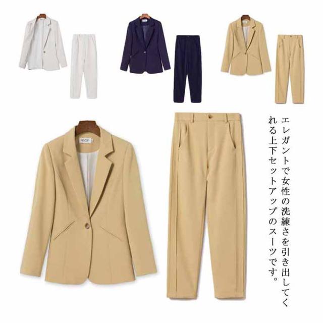 パンツスーツ カジュアルスーツ レディース 2点セット ジャケット パンツ スーツセット ビジネススーツ フォーマル スーツ 長袖 入学式 卒業式 オフィス オールインワン 女性 エレガント カジュアル