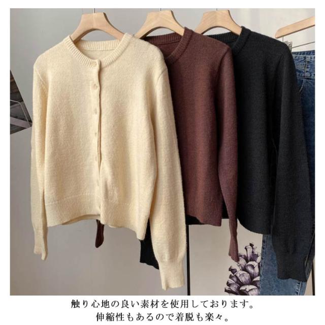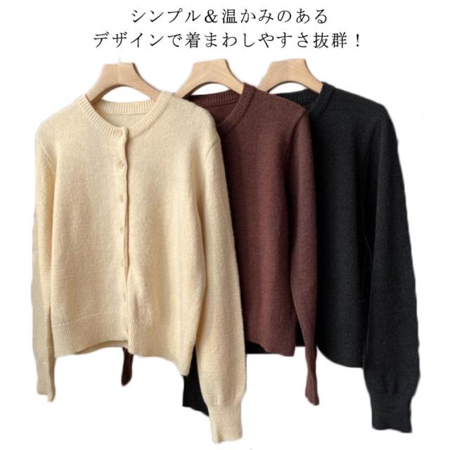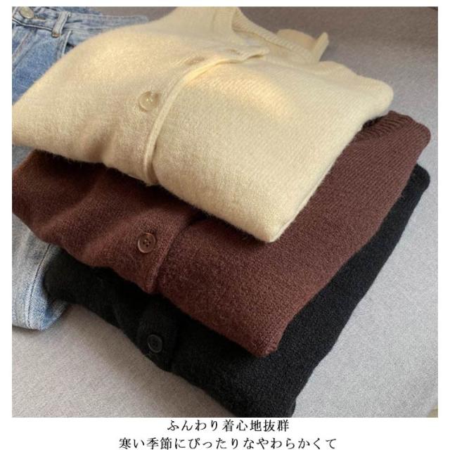送料無料 カーディガン ニット生地 レディース トップス 中厚手 長袖 前開き 羽織り リブニット あったか 無地 可愛い お洒落 オフィス レトロ カジュアル エレガント ナチュラル フェミニン 女性用 ゆったり 体型カバー 大人 秋 冬