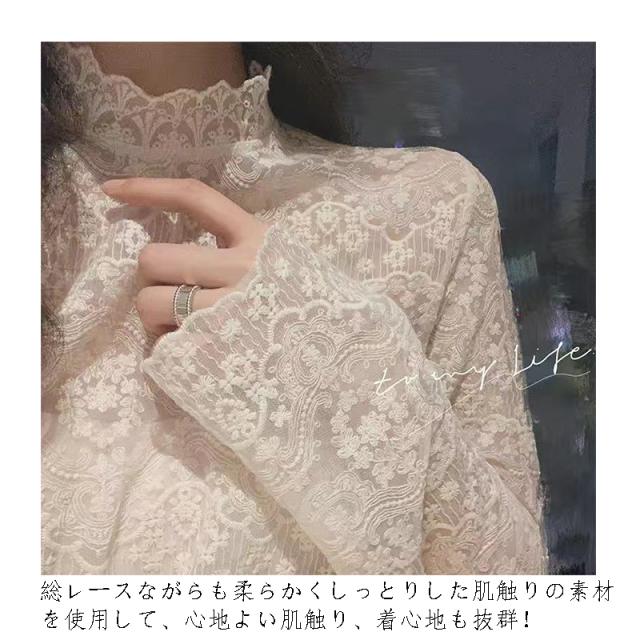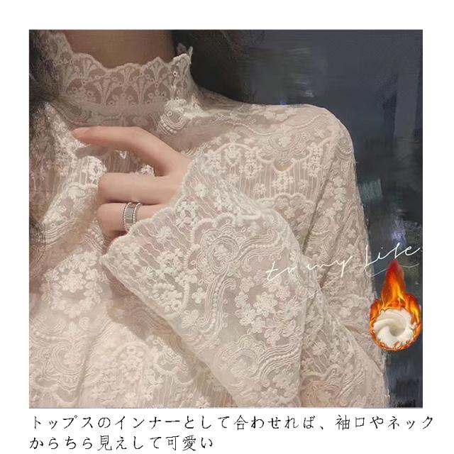 送料無料 レースインナー 長袖 秋 冬 春 レディース カットソー 裏起毛 春 夏 インナー トップス 長袖 ロンT ハイネック 立ち襟 レイヤード 総レース 透け感 細身 下着 重ね着 パーティー 結婚式 上品 高級感 エレガント カジュアル オフィス 上品