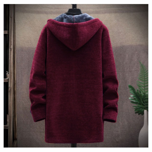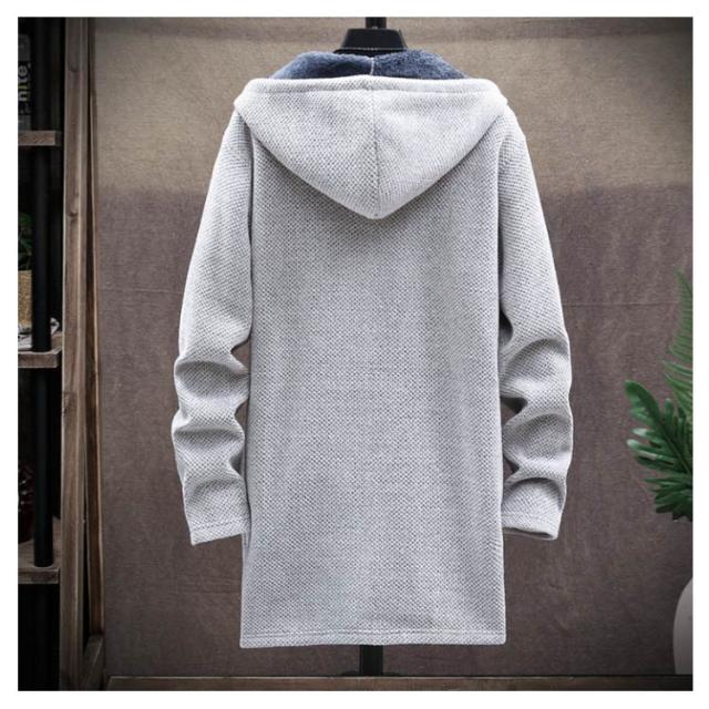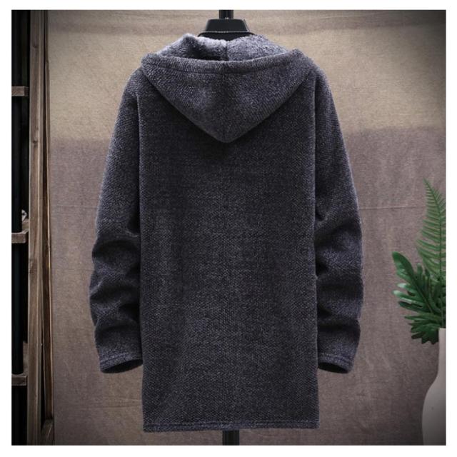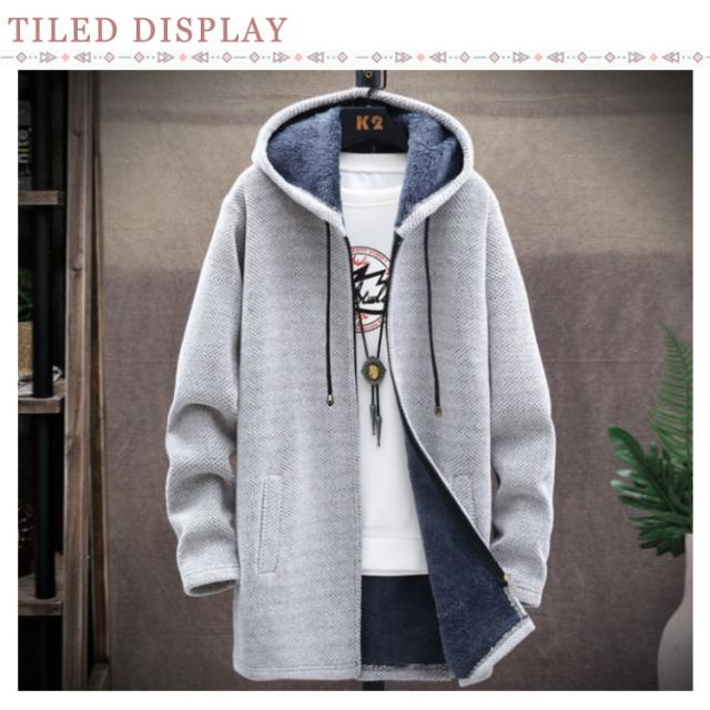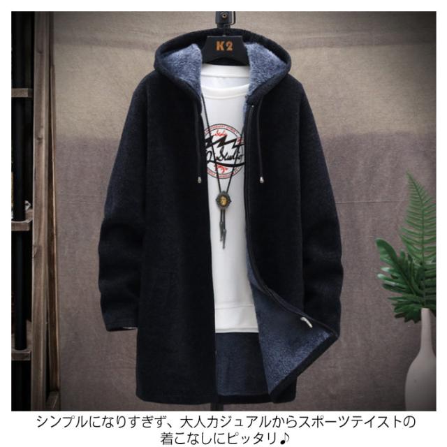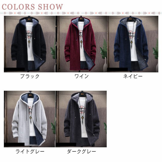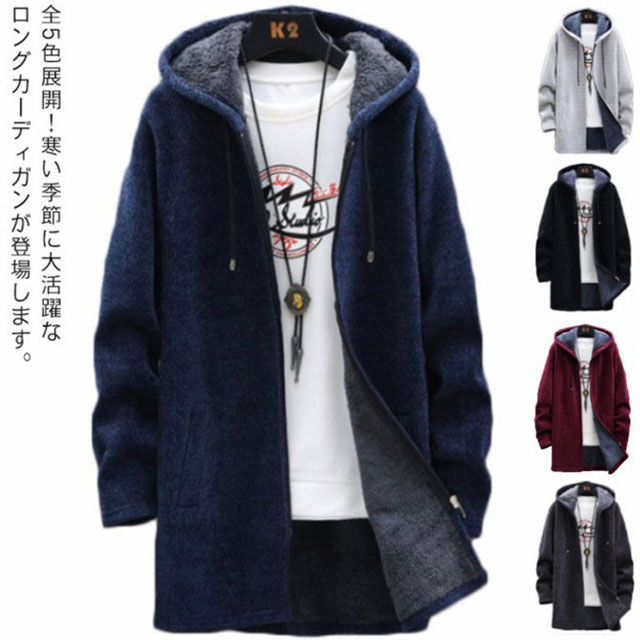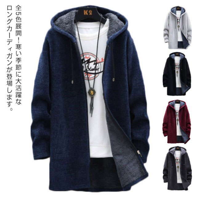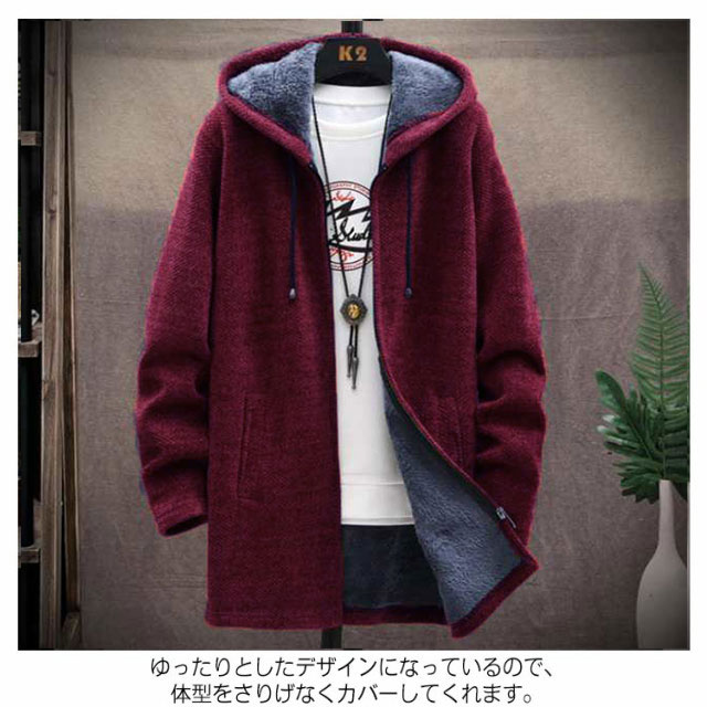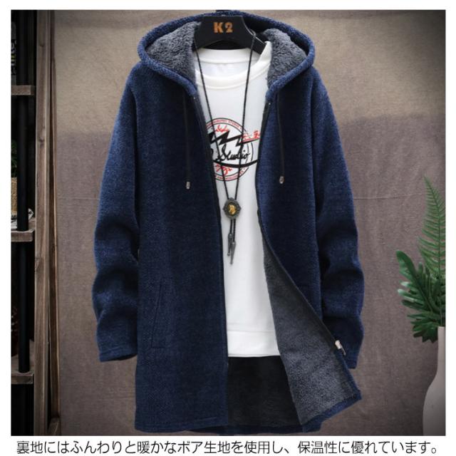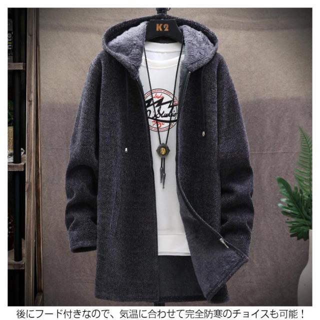 ロングカーディガン メンズ 裏起毛 秋冬服 裏ボア ジップアップ アウター ニットカーディガン フード付き 厚手 暖かい 防風 防寒 カジュアル 普段着