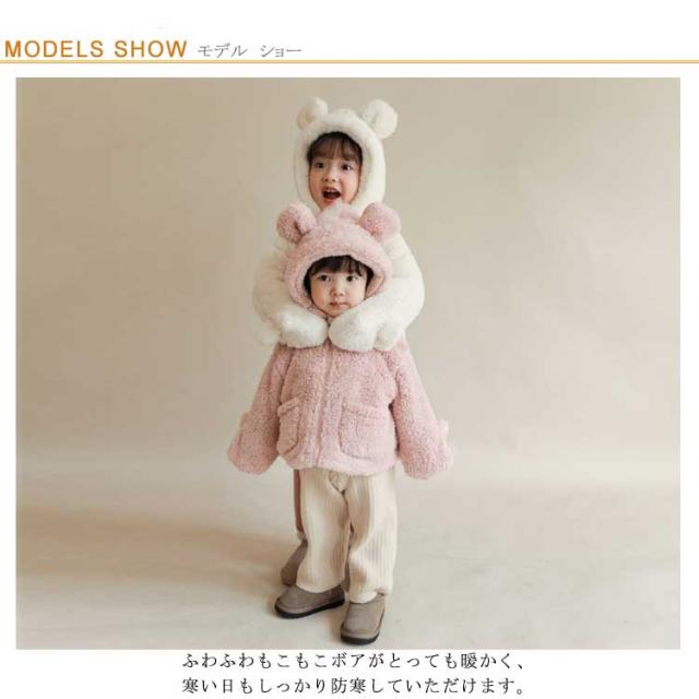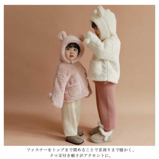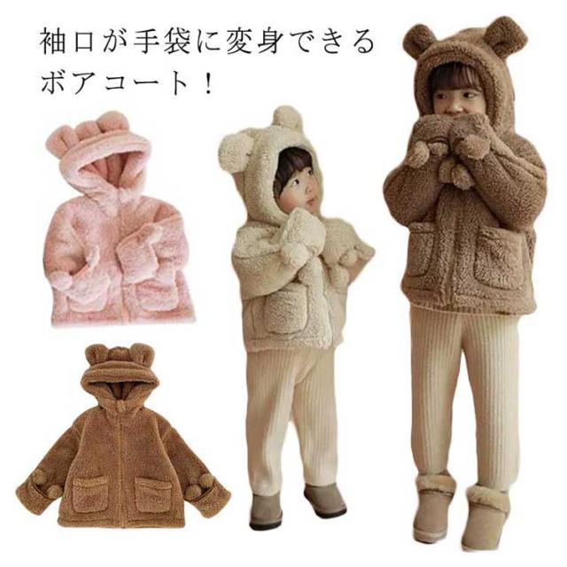 ボアコート キッズ 子供服 ボア ジャケット 女の子 男の子 手袋付き 子供コート 裏ボア 裏起毛 暖かい 防寒 アウター 上着 ブルゾン クマ耳 フード付き ふわふわ もこもこ 暖かい あったか 保温 冬服 秋服