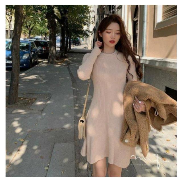 | 大人っぽい印象になるニットフレアワンピースです。 シンプルなデザインで着まわし力も◎ | |