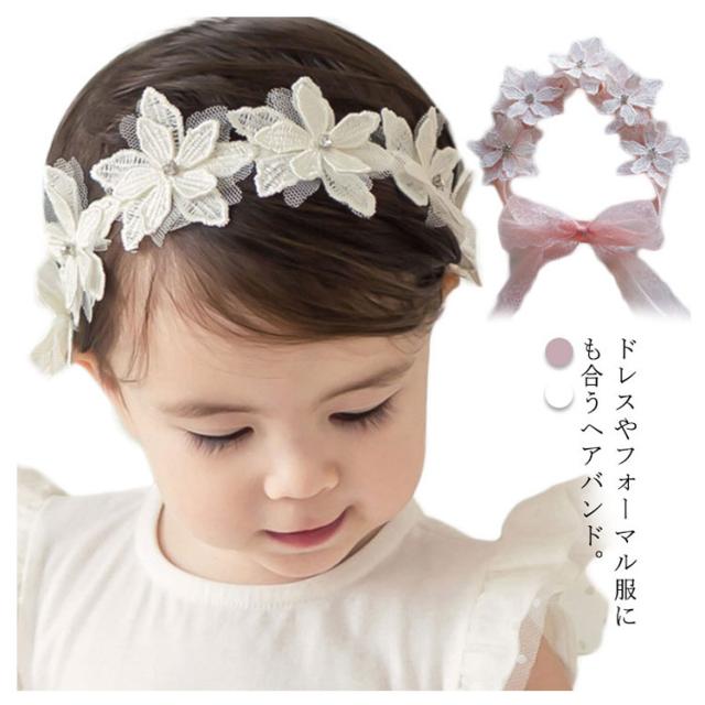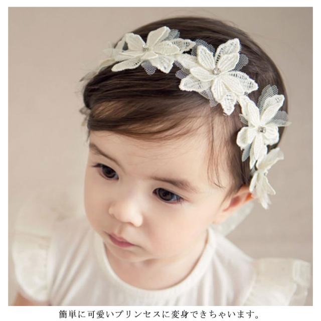 ベビー ヘアバンド レース プリンセス 髪飾り ヘアアクセサリー 女の子 赤ちゃん お花 百日祝い おしゃれ かわいい 白 ホワイト ターバン 女児 ヘアーバンド キッズ セレモニー 結婚式 七五三 出産祝い SNS 撮影小物 送料無料