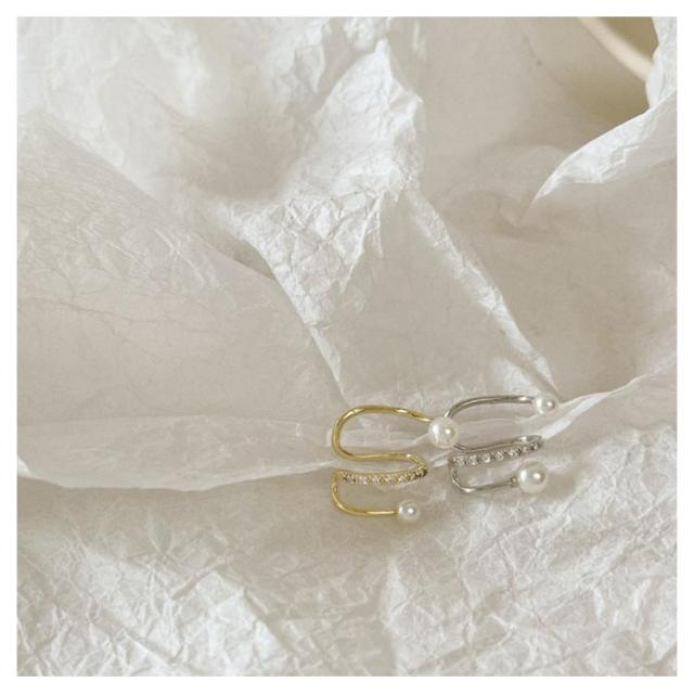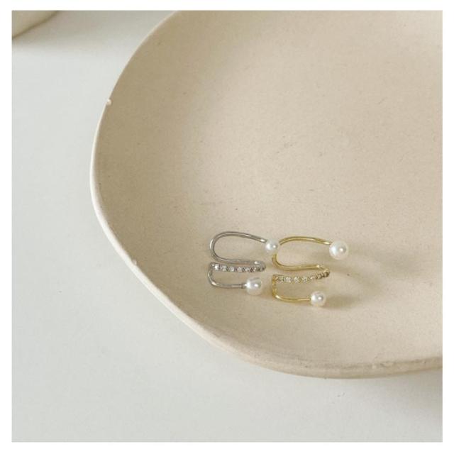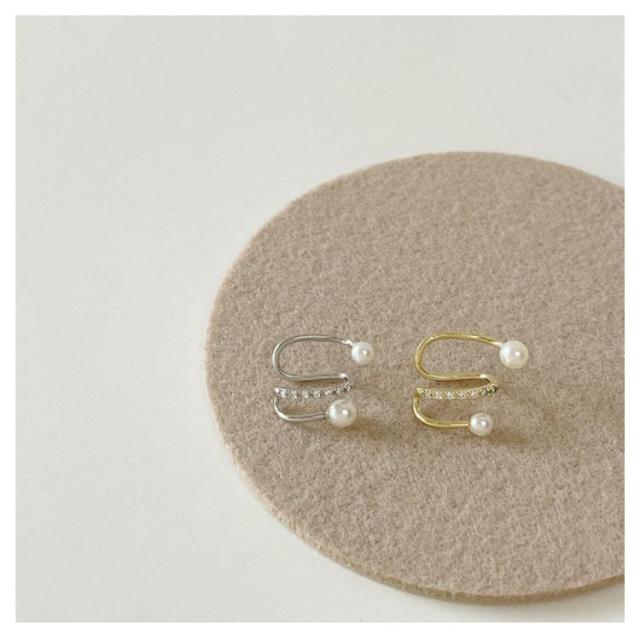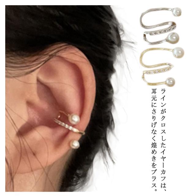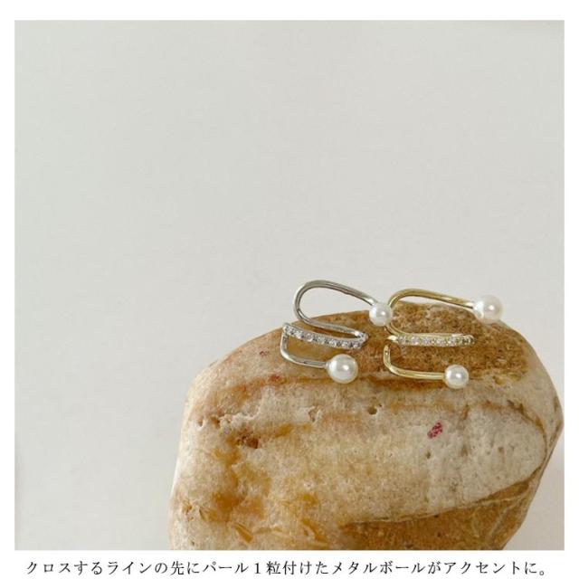 イヤーカフ クロス レディース ノンホールピアス イヤークリップ ジルコニア パール イヤーカフス 片耳用 重ね付け イヤカフ ウェアリング レイヤード風 シンプル 大人 上品 ゴールド シルバー 韓国 可愛い 華奢 シンプル 送料無料