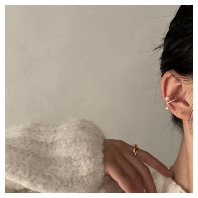 | ラインがクロスしたイヤーカフは、耳元にさりげなく煌めきをプラス。 クロスデザインとジルコニアが控えめながらも上品な印象を与えてくれます。 クロスするラインの先にパール1粒付けたメタルボールがアクセントに。 ドレスアップの日もカジュアルスタイルにも似合うシンプルなアクセサリー。 | |