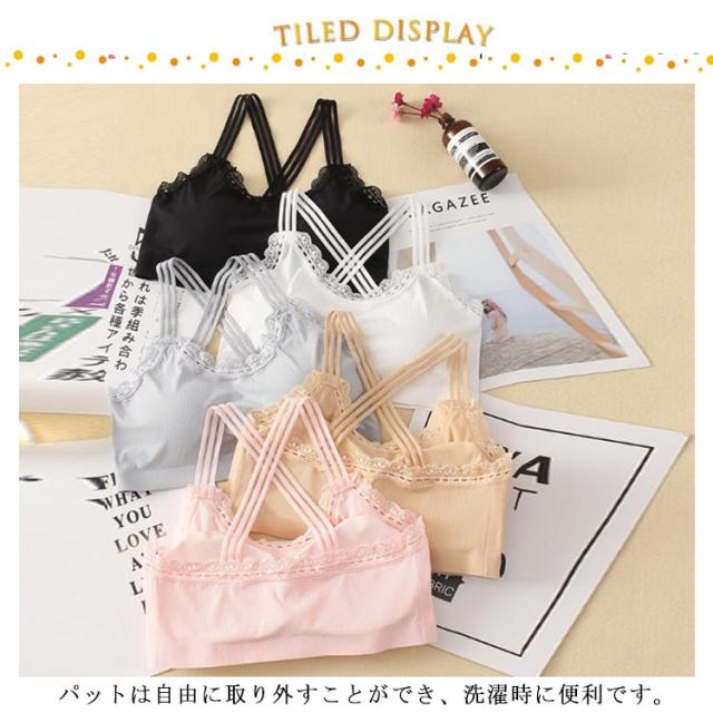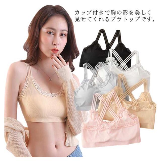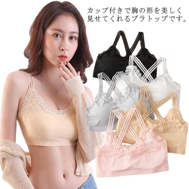 レースブラ ノンワイヤーブラ ナイトブラ 締め付けない カップ付き 取り外す 見せブラ インナー 自宅 リラックス シンプル かわいい おしゃれ 黒 白 ベージュ 送料無料