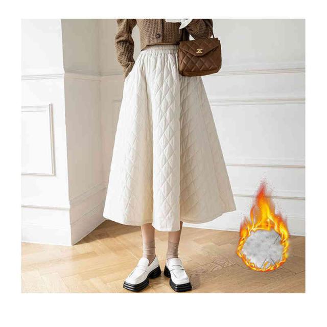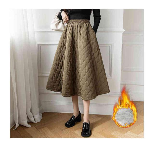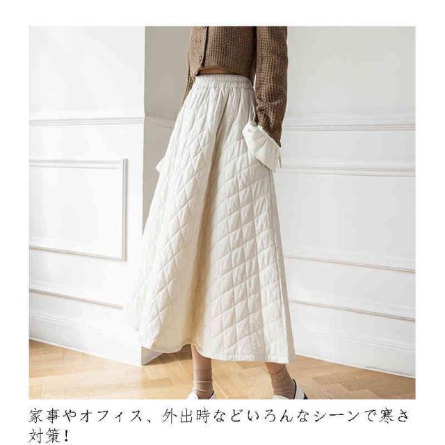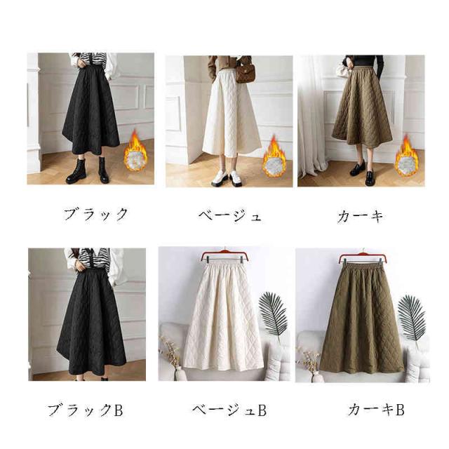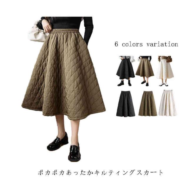 スカート レディース 秋冬 中綿 ボトムス ロング 膝下 ロングスカート 裏起毛 フレアスカート Aライン フレア キルティング 中綿 暖かい 撥水 ゆったり 冬服 キルティングスカート 厚手 着痩せ お洒落 韓国ファション 冬物 防寒着