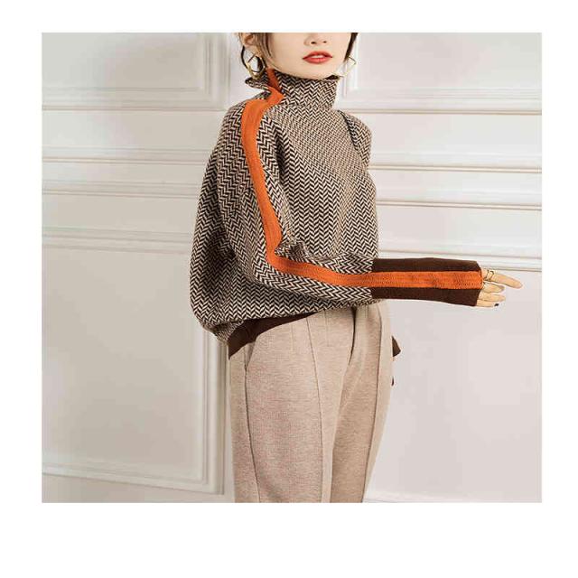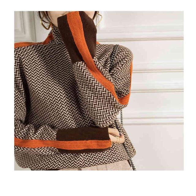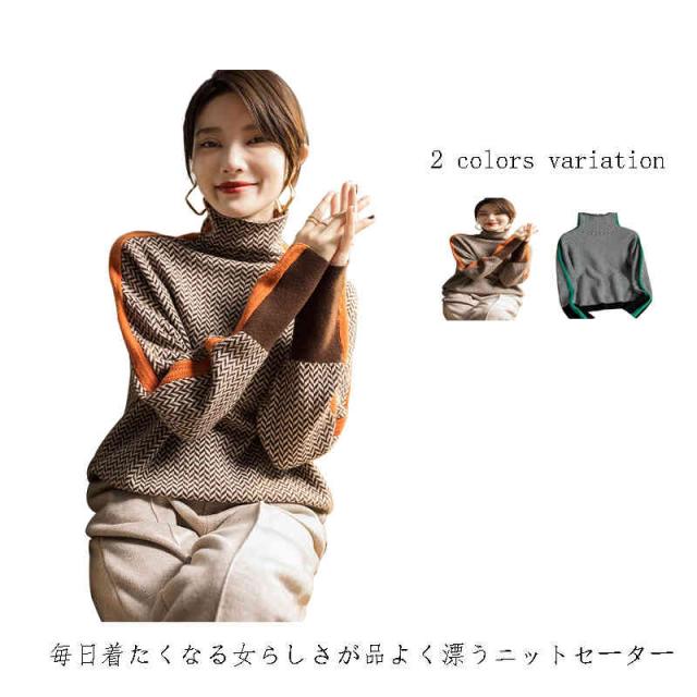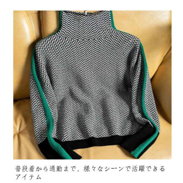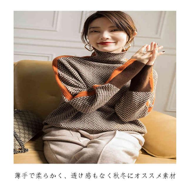 ニット トップス レディース 秋 冬 ハイネック リブ 長袖 セーター ノルディック タートルネック シンプル 大きいサイズ オフィス カジュアル レトロ 着回し 秋冬 ニットソー きれいめ 可愛い 大人 長そで