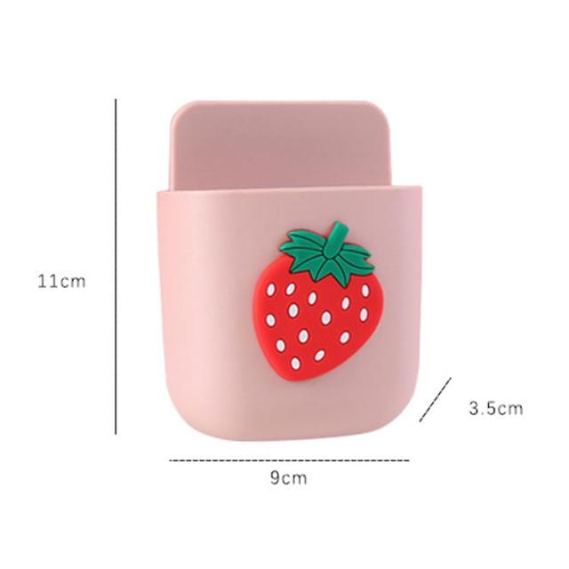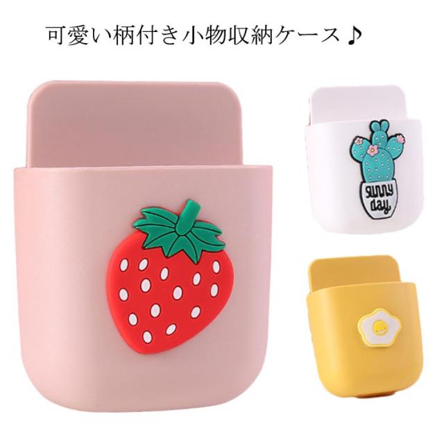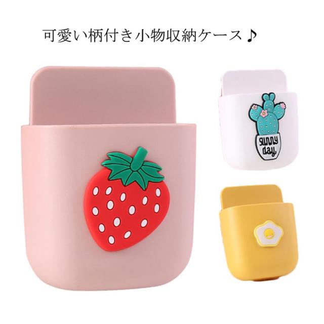 壁付け 小物収納ケース 穴あけ 不要 便利グッズ 小物入れ リモコン テレビ エアコン スマホ ベッドサイド ベッド 洗面所 可愛い 柄 果物 イチゴ もも 送料無料