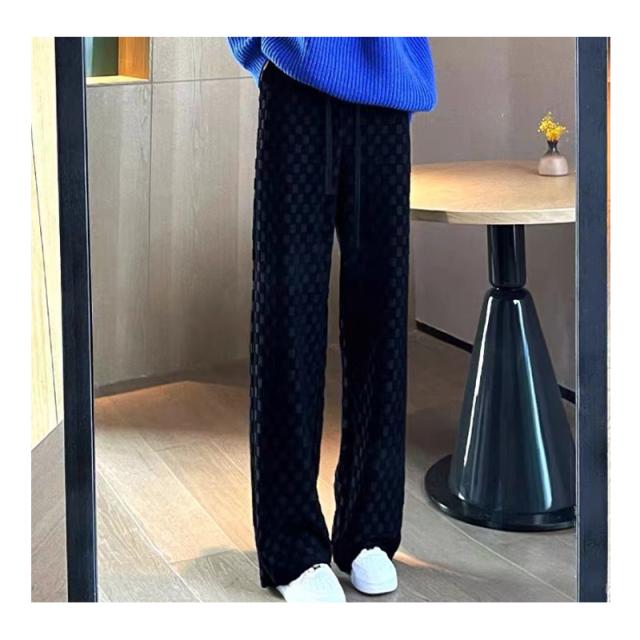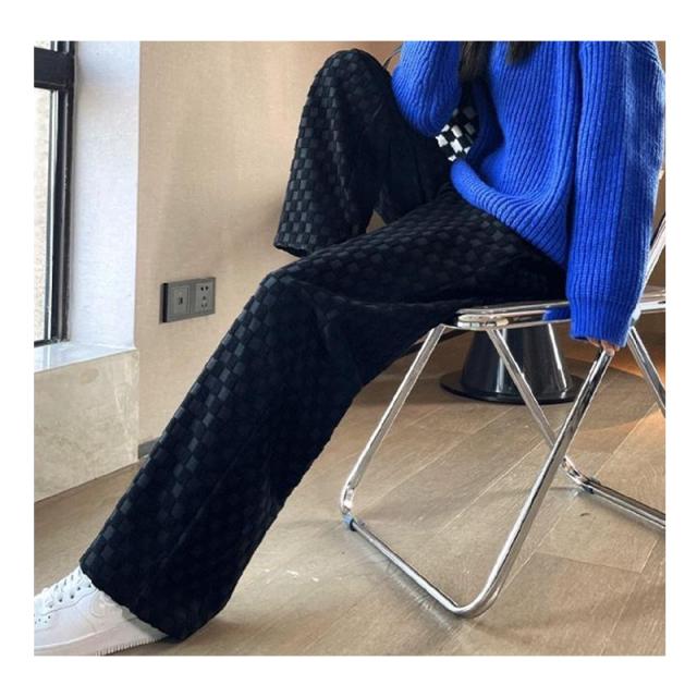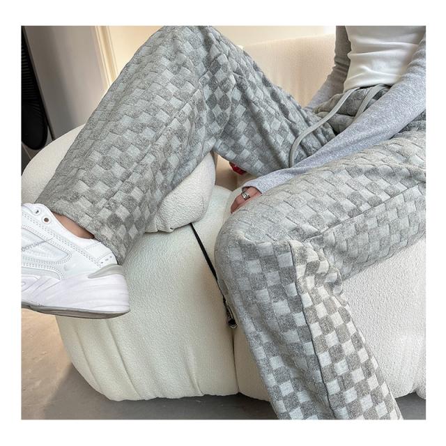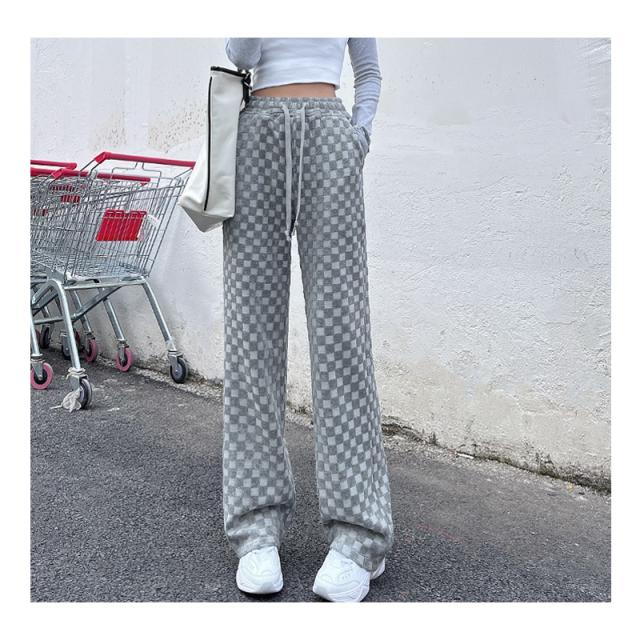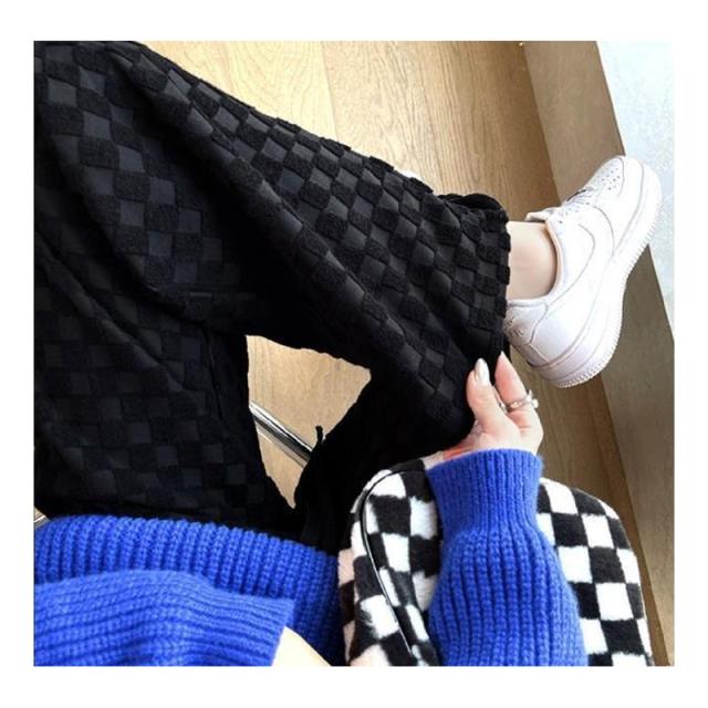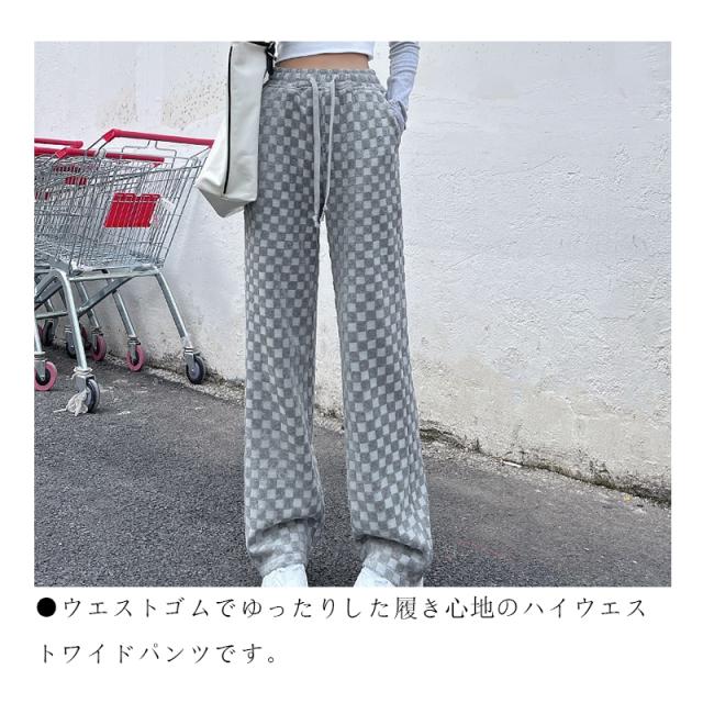 ワイドパンツ ストレートパンツ レディース チェッカーボード柄パンツ ロングパンツ ハイウエスト タータンチェック レトロ ボトムス ズボン 大きいサイズ 着回し ファッショ 春 秋 冬