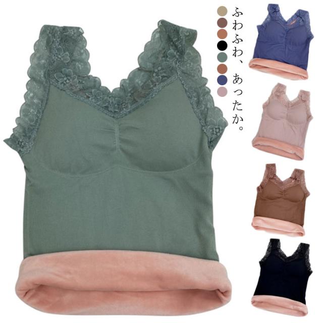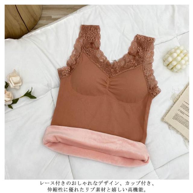 キャミソール レース キャミ レースブラ 裏起毛 タンクトップ ノンワイヤーブラ ナイトブラ 裏ボア 締め付けない カップ付き 取り外す 見せブラ インナー 自宅 リラックス シンプル かわいい おしゃれ 黒 白 ベージュ 送料無料