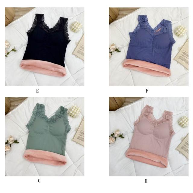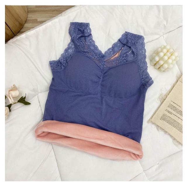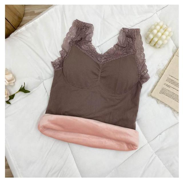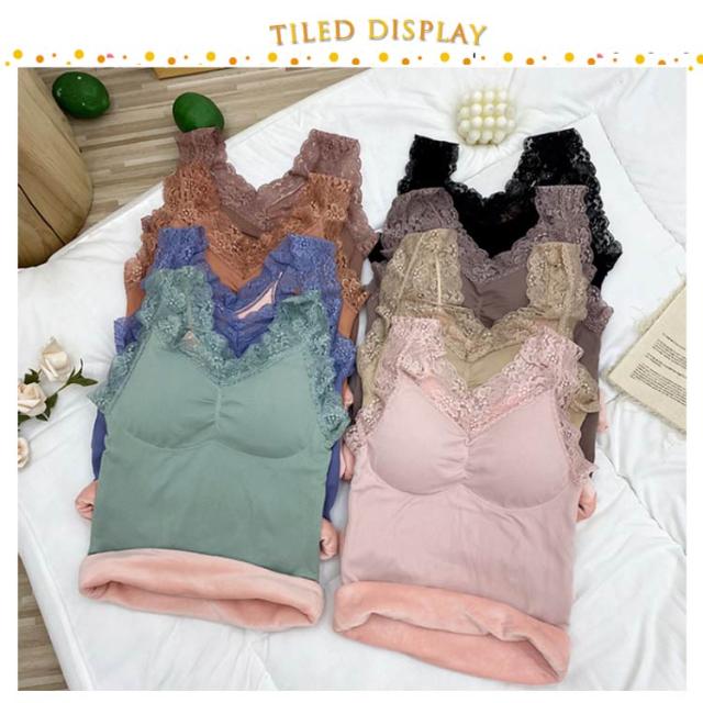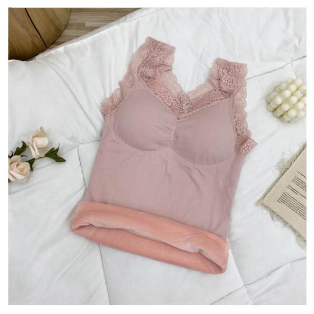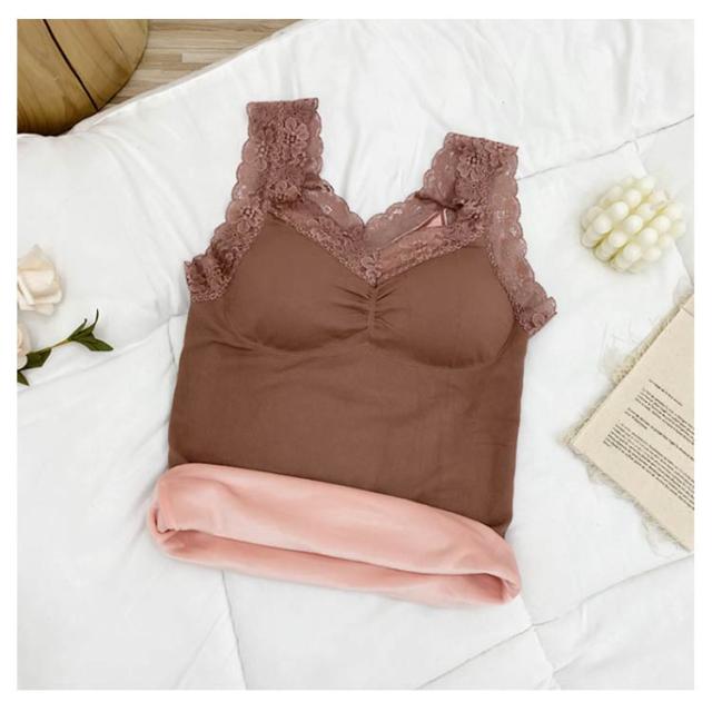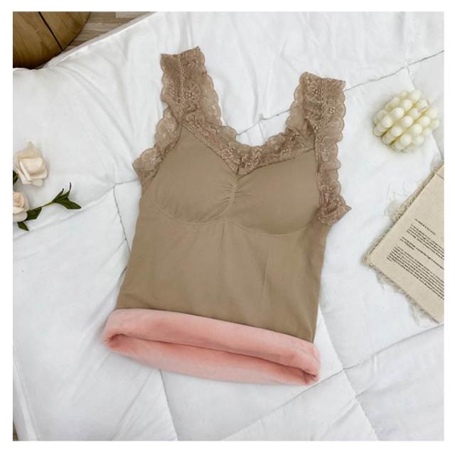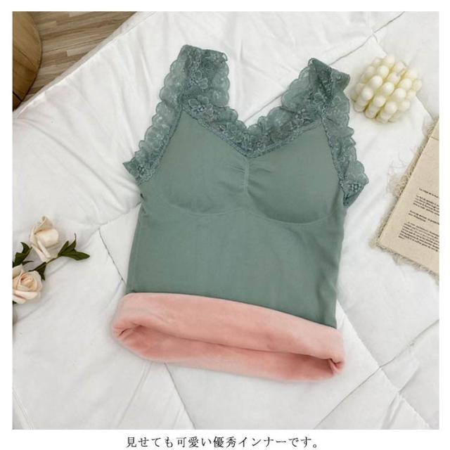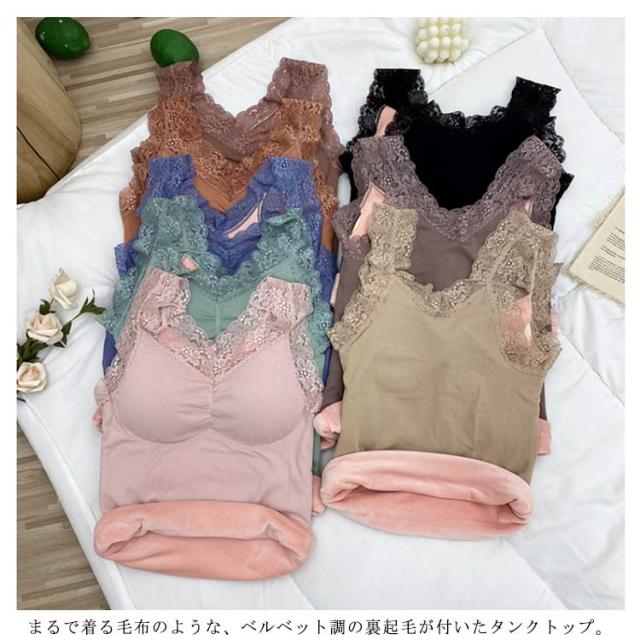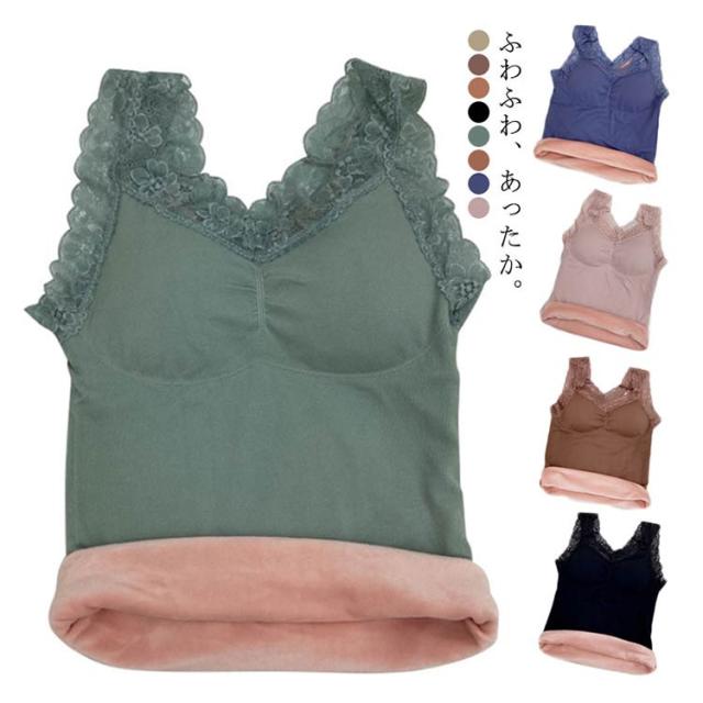 | ふわふわ、あったか。 まるで着る毛布のような、ベルベット調の裏起毛が付いたタンクトップ。 レース付きのおしゃれなデザイン、カップ付き、伸縮性に優れたリブ素材と嬉しい高機能。 見せても可愛い優秀インナーです。 | |