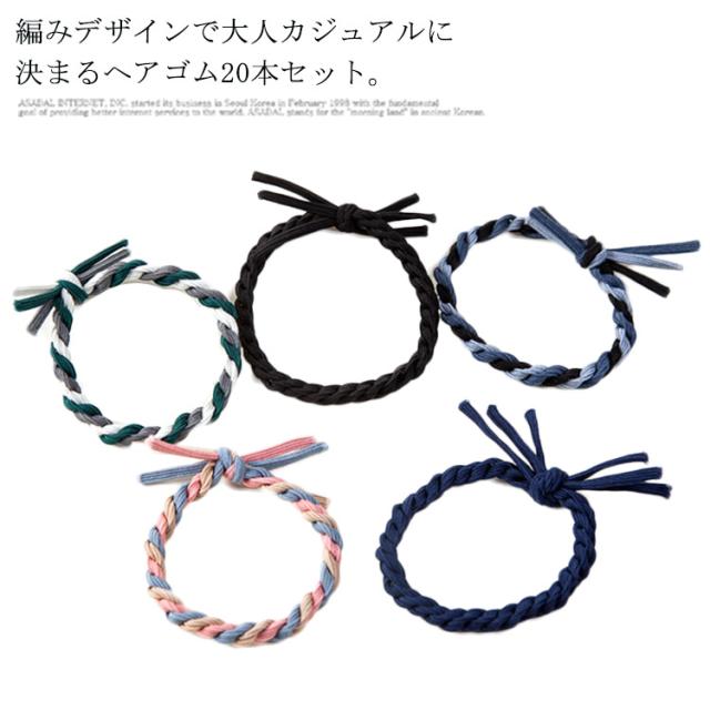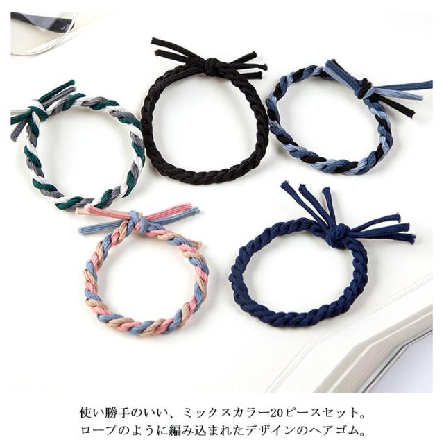 ロープ風ヘアゴム 20本入り 太め ヘアゴム ロープゴム まとめ髪 おしゃれ 跡がつかない 髪ゴム 簡単 ヘアアレンジ ヘアアクセサリー カジュアル シンプル 大人っぽい 可愛い オフィス 通勤 人気 プレゼント 送料無料