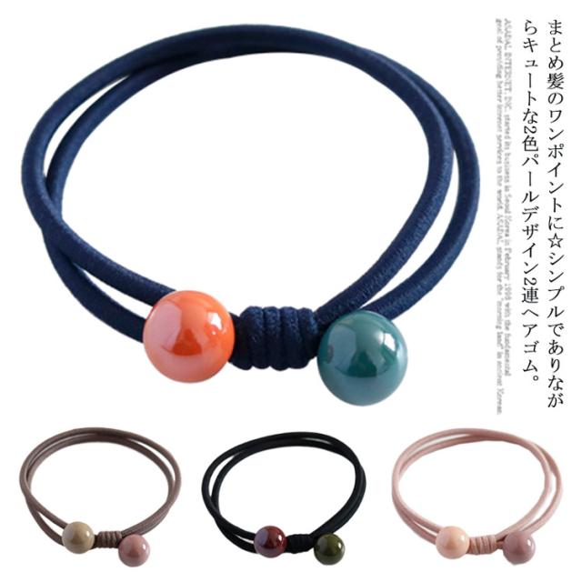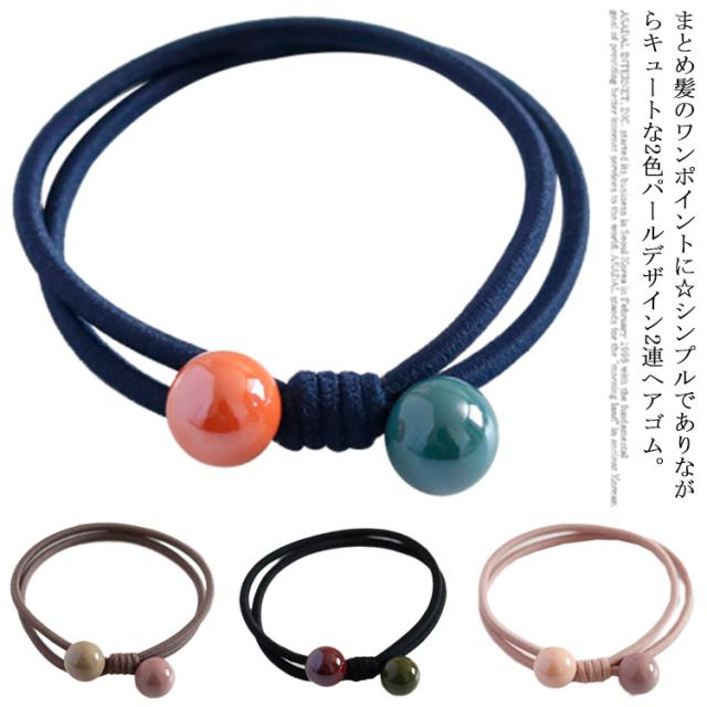 ヘアゴム 2連ヘアゴム ダブルボール 2本セット 髪飾り 髪ゴム ヘアボニー ヘアアレンジ きれい ヘアアクセサリー 髪留め まとめ髪 リングゴム ヘアアクセ シンプル 大人可愛い レディース カジュアル エレガント アクセント ギフト 贈り物 送料無料