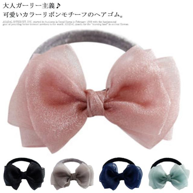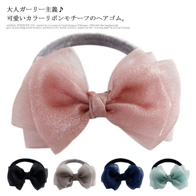 リボン ヘアゴム 大人っぽい リボン シースルー おしゃれ ヘアポニー レディース 子供 女の子 フォーマル ヘアアクセサリー 髪飾り 髪留め シンプル 重ね付け 大人 可愛い 発表会 衣装 ダンス プレゼント 送料無料