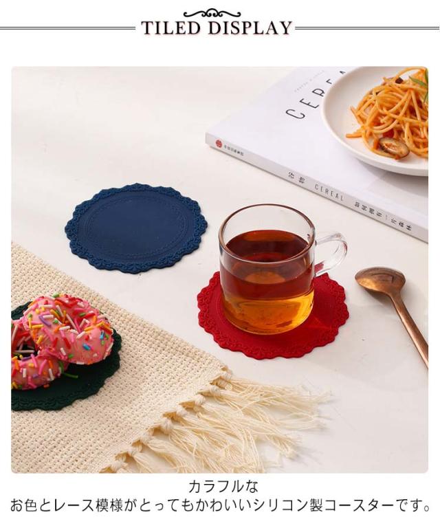 | コースター カラフルなお色とレース模様がとってもかわいいシリコン製コースターです。 滑らないのでお子様のお飲物を置いてあげても喜ばれるでしょう。 こんなカラフルでオシャレななコースターがあれば、突然の来客時やお友達が訪ねて来た時などにも慌てませんね。 毎日のコーヒーブレイクや、ご家族、お友達、お客様用にとたくさん活用してくださいね。 | |