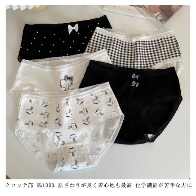 【5枚セット】【送料無料】 綿混ショーツ 福袋 お得な5枚組 レディース ショーツ 下着 ストレスフリー パンツ 水玉 キャラクター おしゃれ レース 無地 ストライプ