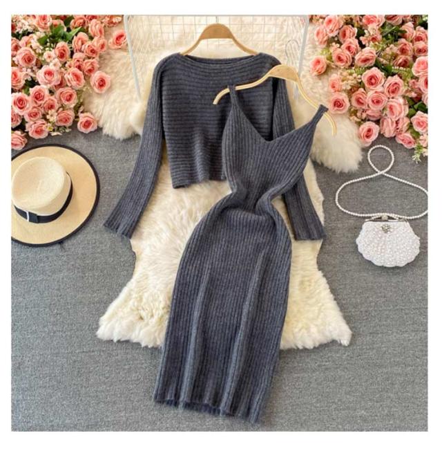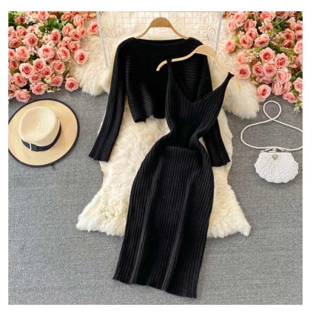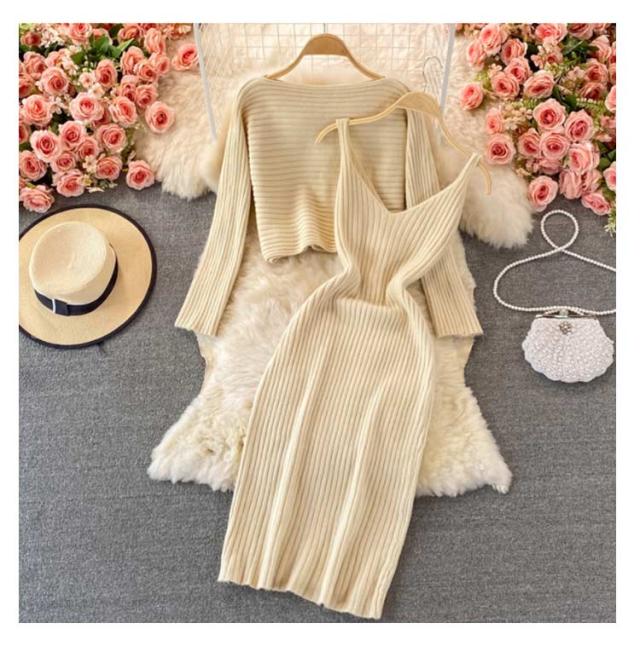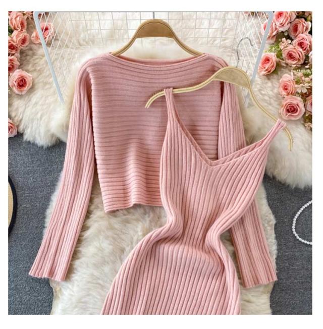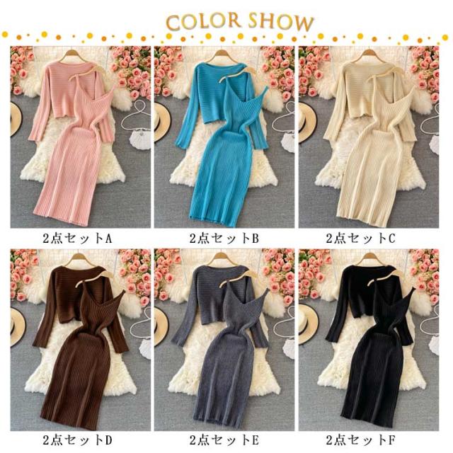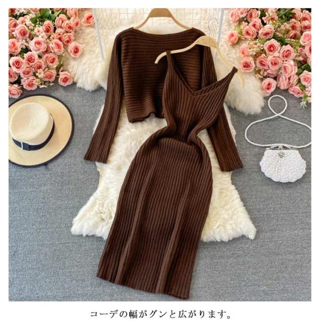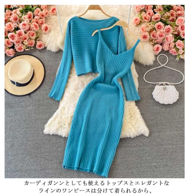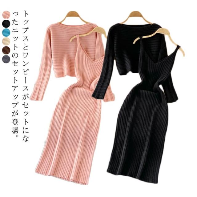 送料無料 ニット セットアップ ニットアップ レディース ワンピース ニットトップス 2点セット ニット キャミソールワンピース リブニット 無地 シンプル 上品 通勤 普段着 お洒落 謝恩会 披露宴 同窓会 女子会 結婚式