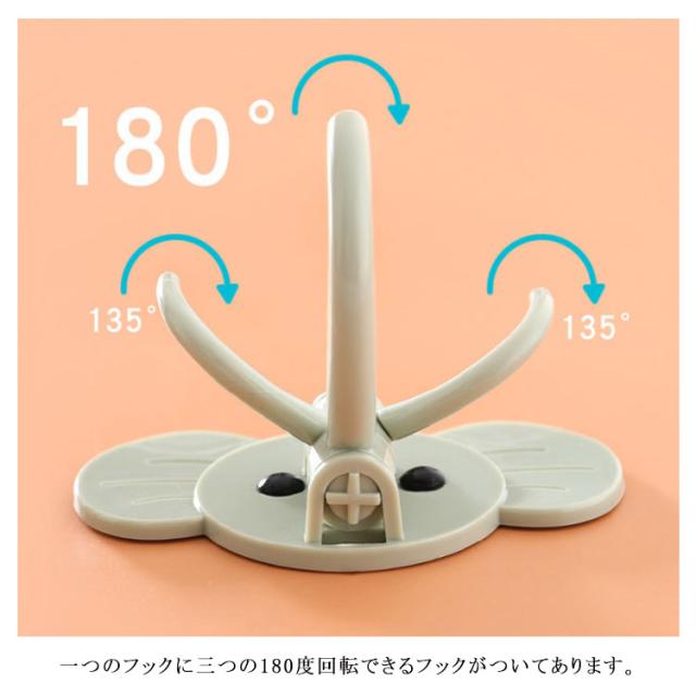 | 小物収納フック♪ 可愛い象タイプ&おしゃれな5色展開となります。 強力の接着力で最大耐荷重2kgです。 一つのフックに三つの180度回転できるフックがついてあります。 お風呂、リビング、キッチンなどに使い、日常小物を簡単に収納できます。 | |