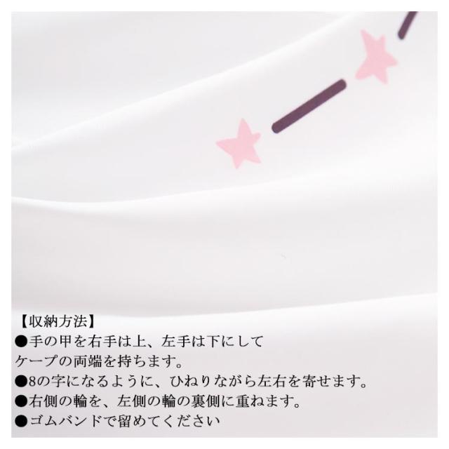 | おうちでのヘアカットに便利な散髪用ケープ。 すっぽりかぶって装着も簡単。 ワンタッチテープで首まわりを調節できるので、子供から大人まで使えます。 帯電防止加工で髪の毛が飛び散りにくく、後片付けもラクラク! カットした髪の毛はまとめて簡単にポイ! ねじってたたんでコンパクトに収納できます。 【使用方法】 ●ケープを広げ、開いた方を前にします。 ●ケープを頭からかぶり、首周りに合わせてワンタッチテープを留めます。 ●髪を切り終わったら首周りのワンタッチテープを外し、髪の毛が落ちないように、ゆっくりと脱ぎます。 ●髪の毛を捨てます。 【収納方法】 ●手の甲を右手は上、左手は下にして、ケープの両端を持ちます。 ●8の字になるように、ひねりながら左右を寄せます。 ●右側の輪を、左側の輪の裏側に重ねます。 ●ゴムバンドで留めてください。 | |