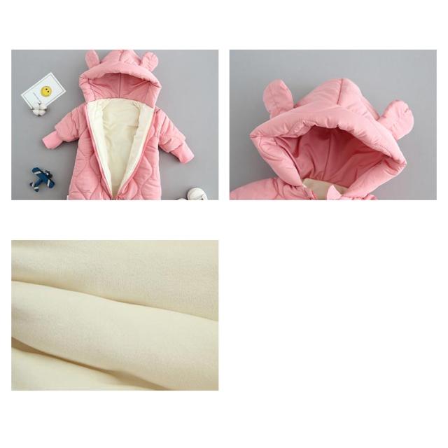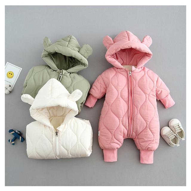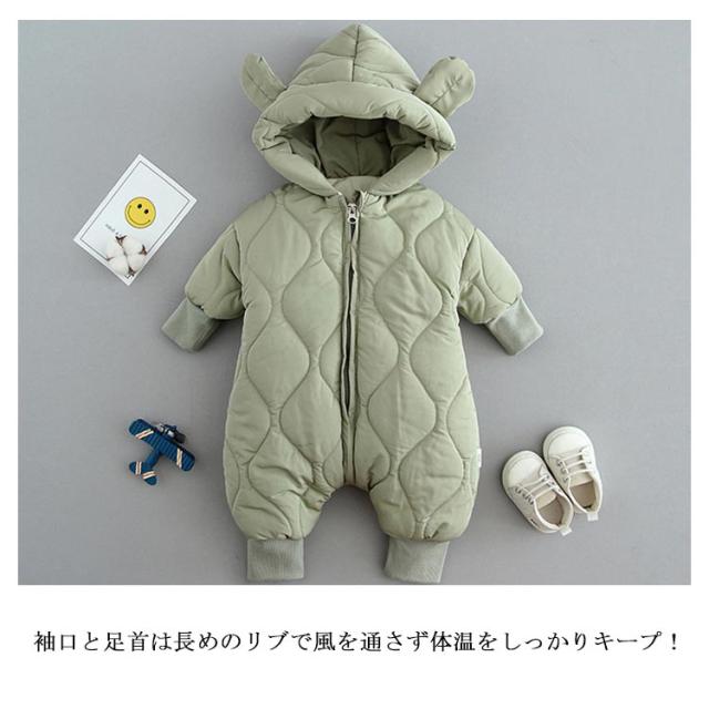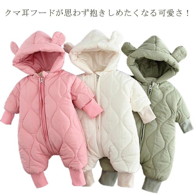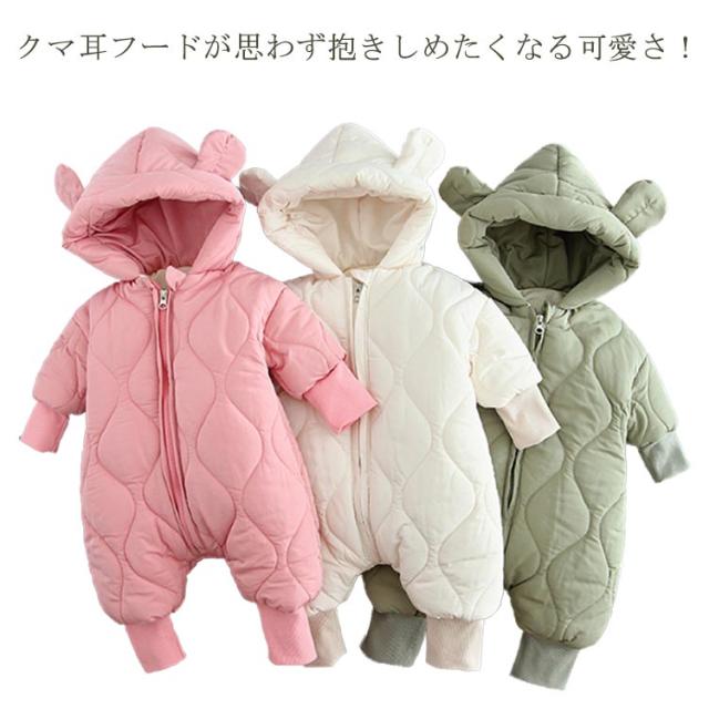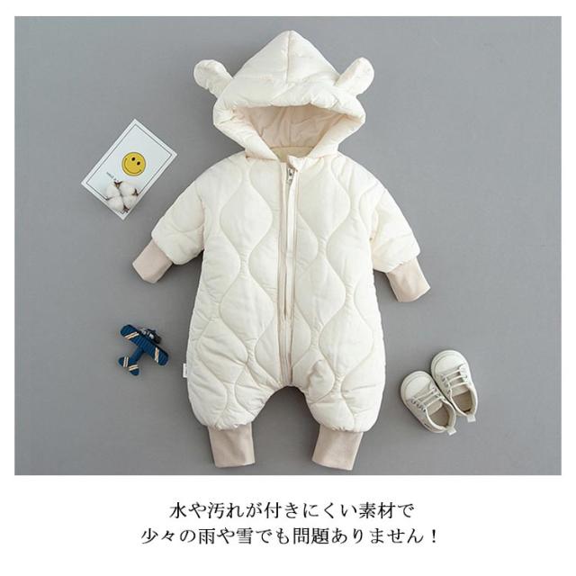 ベビー服 ジャンプスーツ ロンパース ベビー カバーオール 耳付き くま耳 フード付き 中綿 アウター 子供服 キッズ 長袖 雪遊び 撥水 防水 防寒 秋冬 アウトドア 可愛い 女の子 男の子 ファスナー