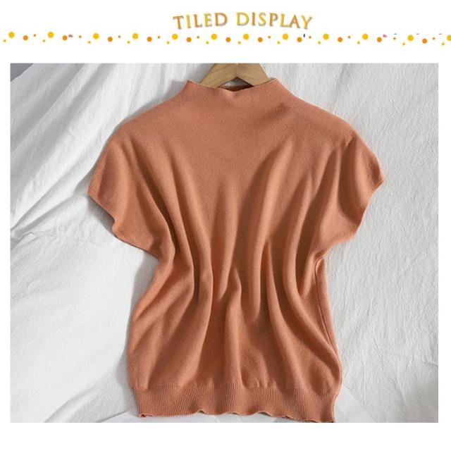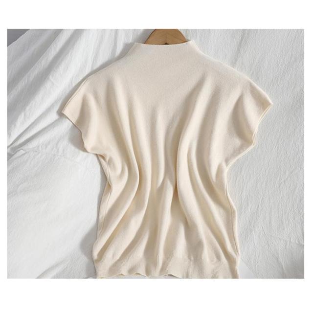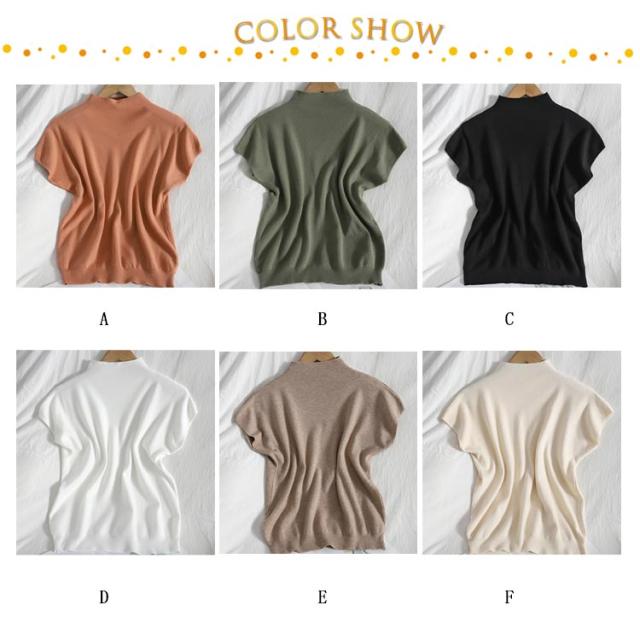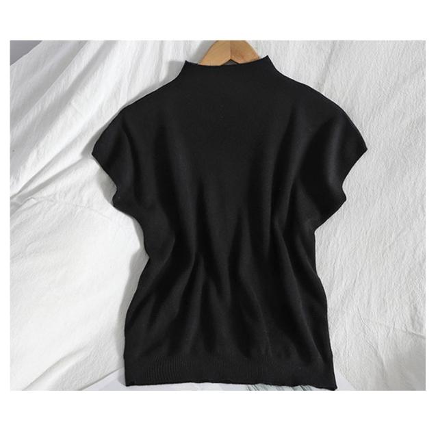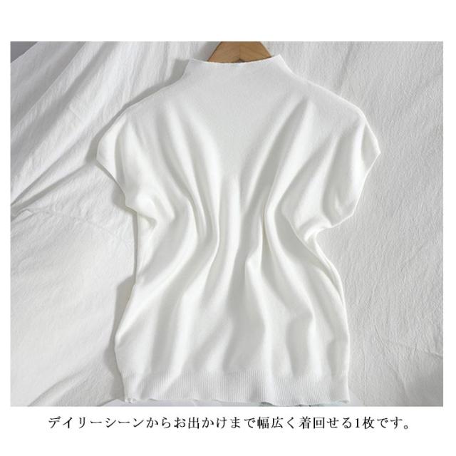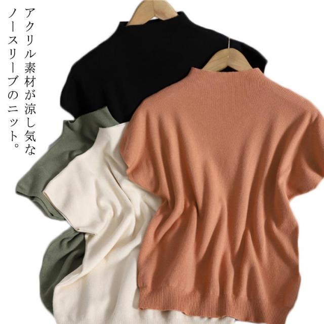 サマーニット レディース シャツ ブラウス ノースリーブ プルオーバー ハイネック ニット Tシャツ 春 夏 秋 トップス 大人 おしゃれ きれいめ ンプル 通勤 オフィス 20代 30代 40代 50代 母の日 ギフト プレゼント 送料無料