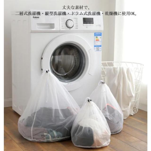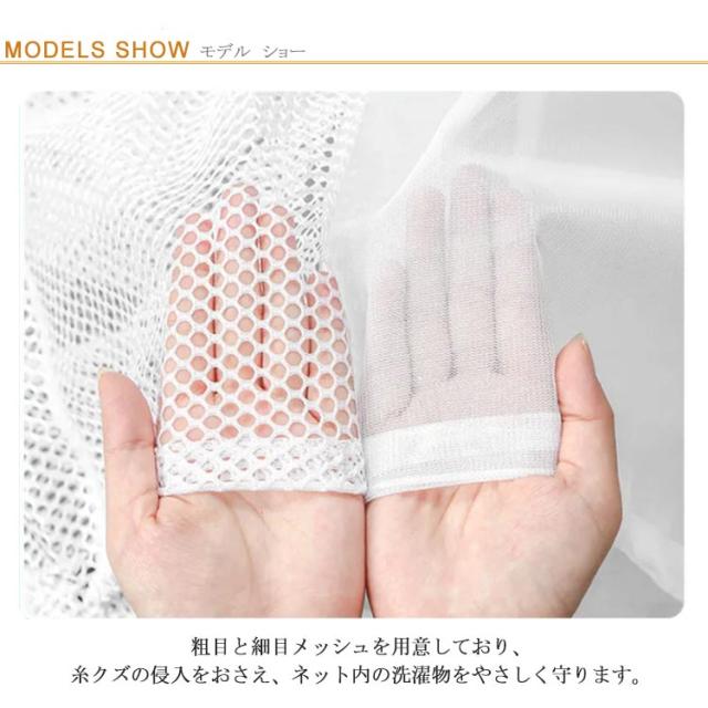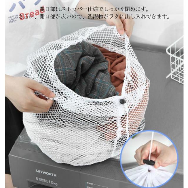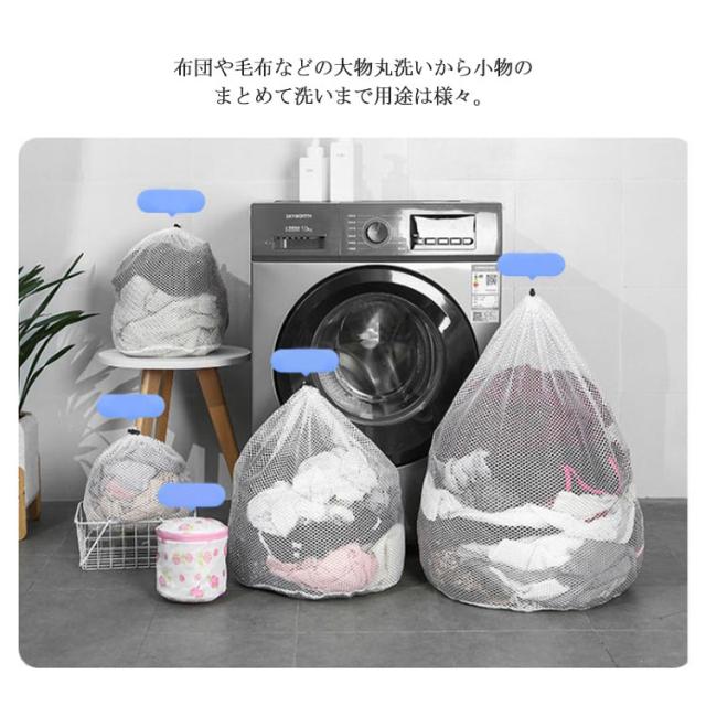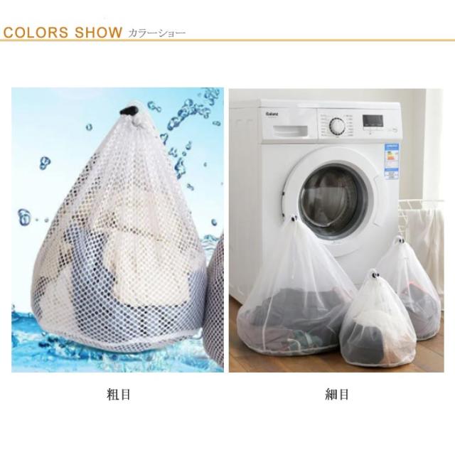 | 3個セット!洗濯物の絡まりと型崩れを防ぐ。 粗目と細目メッシュを用意しており、糸クズの侵入をおさえ、ネット内の洗濯物をやさしく守ります。 丸型なので洗濯物がネットの中で回転し、かたよらずきれいに洗えます。 開口部はストッパー仕様でしっかり閉めます。さらに、開口部が広いので、洗濯物がラクに出し入れできます。 布団や毛布などの大物丸洗いから小物のまとめて洗いまで用途は様々。 丈夫な素材で、二層式洗濯機・縦型洗濯機・ドラム式洗濯機・乾燥機に使用OK。 洗濯機の取り出しや持ち運びに便利な紐付き。 | |
