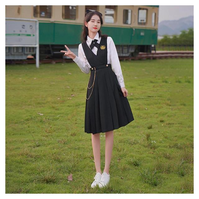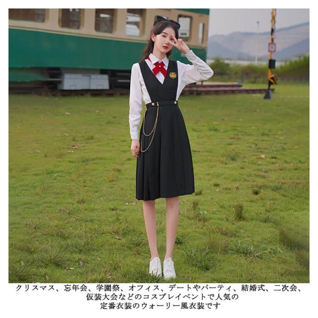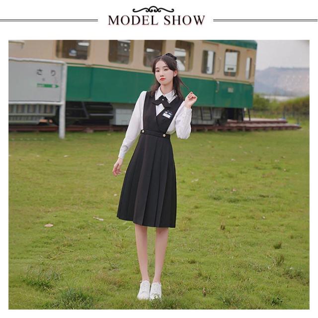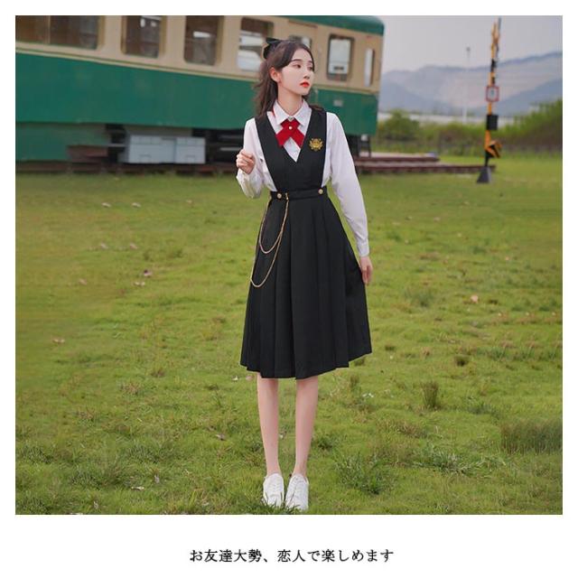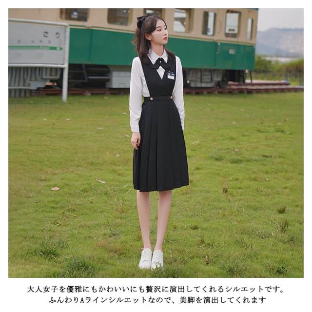 JK ジャンパースカート プリーツスカート 制服スカート サロペットスカート スクールスカート ワンピース 学生服 通学 学院風 女子制服 コスプレ 園祭 体育祭 文化祭 春夏 秋 女子 高生 高校生 學院風 Vネック 無地 ブラック