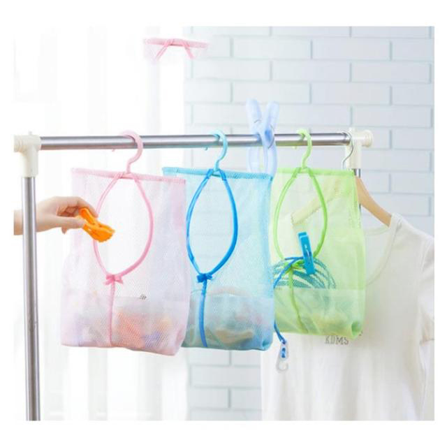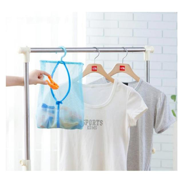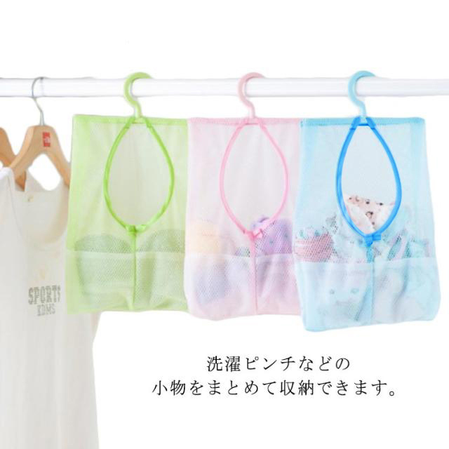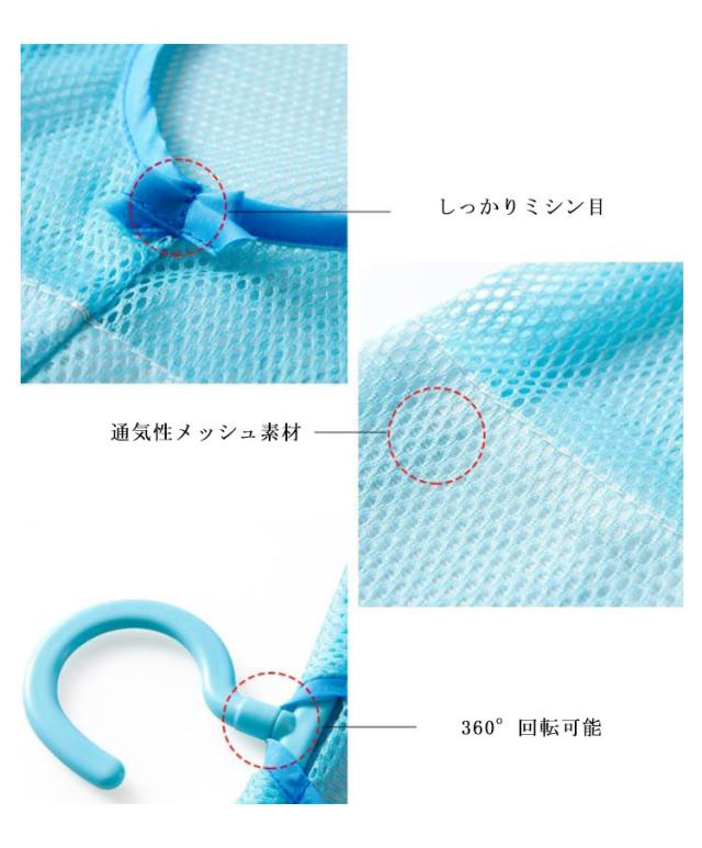 | ●洗濯ピンチなどの小物をまとめて収納できます。 ●メッシュ素材で通気性抜群です。 ●360°回転可能フック付きなので、ハンガーラックなどに掛けて保管できます。 | |