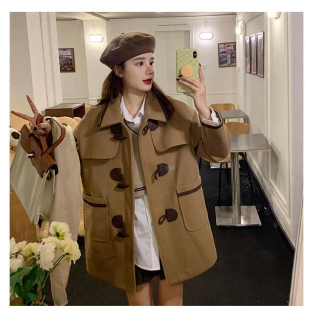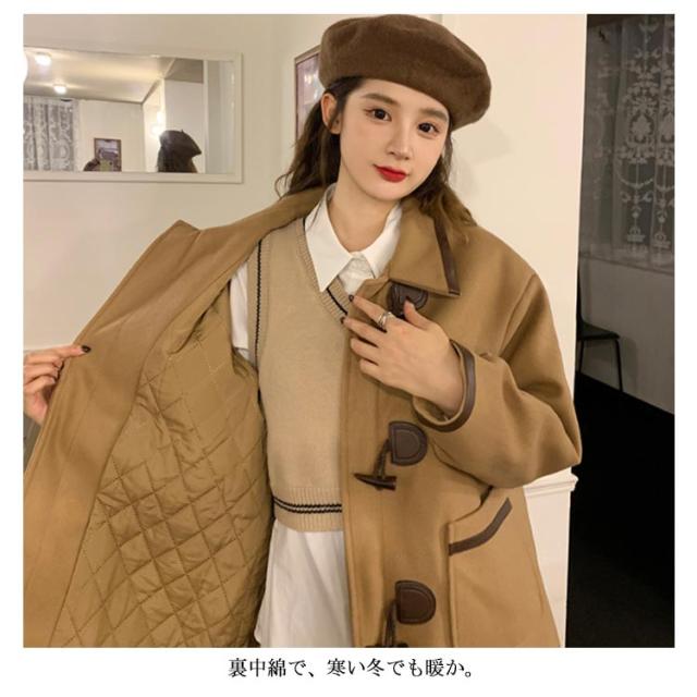 膝丈 ダッフルコート ロングコート スクールコート ショートル丈 中綿 コート 春秋 秋冬 冬 ひざ丈 防寒 ゆったり 学生 OL 通勤 通学 制服 ブラウン キャメル 春 秋 冬 レディース