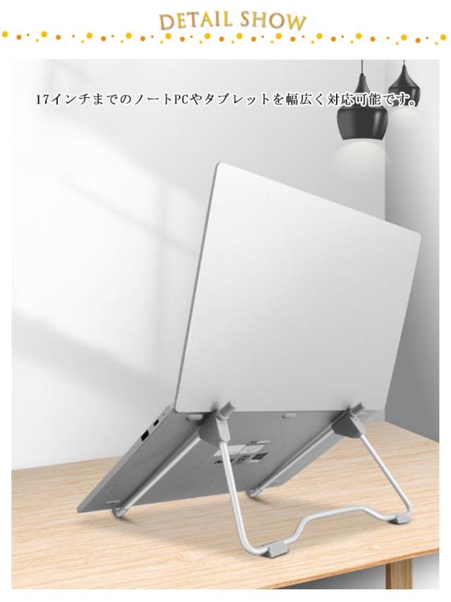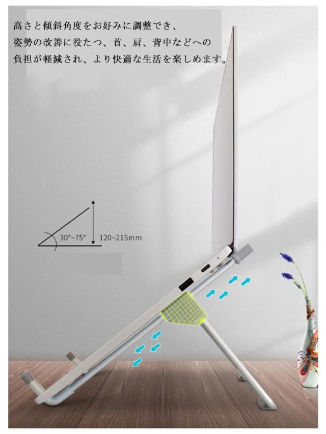 折りたたみ式 ノートパソコンスタンド ノートPCスタンド ノートPC タブレット 11〜17.3インチ対応 軽量アルミ合金製 ホルダー 高さ 角度調整可能 滑り止め付き 傾斜角度30°〜75°調整 パソコンスタンド