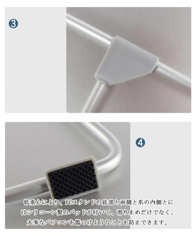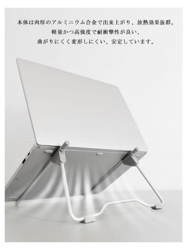| 超軽量ノートパソコンスタンド(ノートPCスタンド)です!17インチまでのノートPCやタブレットを幅広く対応可能です。 【高度12CM〜21.5CM・傾斜角度30°〜75°調節自由】高さと傾斜角度をお好みに調整でき、姿勢の改善に役たつ、首、肩、背中などへの負担が軽減され、より快適な生活を楽しめます。 【放熱効果抜群アルミ合金素材】本体は肉厚のアルミニウム合金で出来上がり、放熱効果抜群。軽量かつ高強度で耐衝撃性が良い、曲がりにくく変形しにくい、安定しています。 【滑り止め・保護パッド】低重心により、PCスタンドの底部と両側と爪の内側とにはシリコーン製のパッドが付いて、滑り止めだけでなく、大事なパソコンを傷つけようなことを防止できます。 【折りたたみ式・収納スペースに困りません】折りたたみ可能な仕様で、収納スペースに困りません。持ち運びにも便利でどこでも便利に使えます。 | |