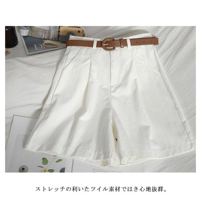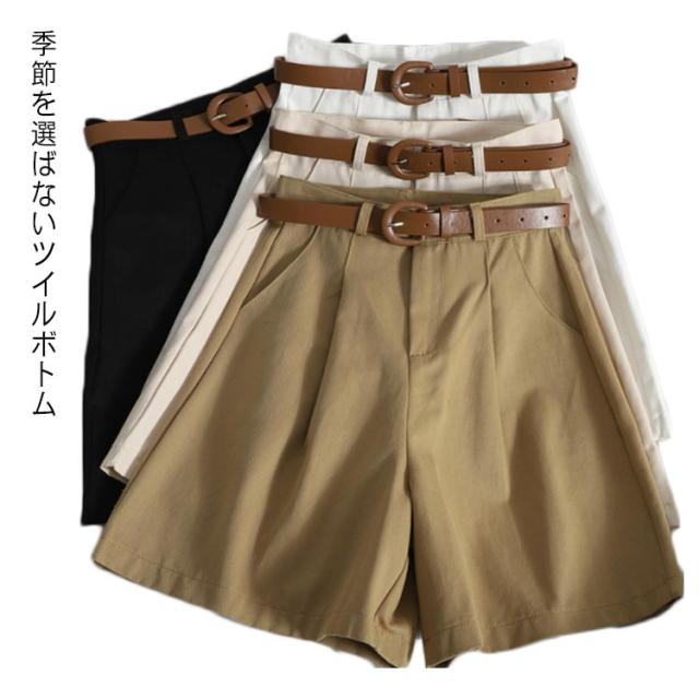 パンツ ショートパンツ 無地 ツイル 無地 ベルト 美脚 カジュアル シンプル レディース ツイルボトム ベルト付ショートパンツ 送料無料