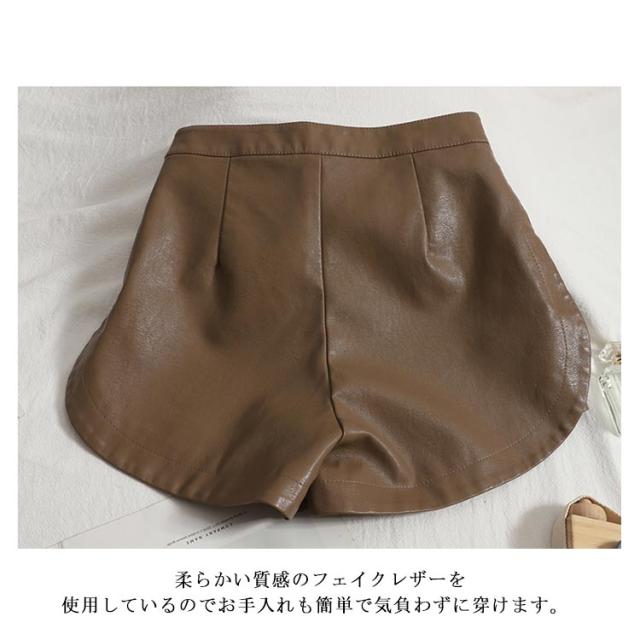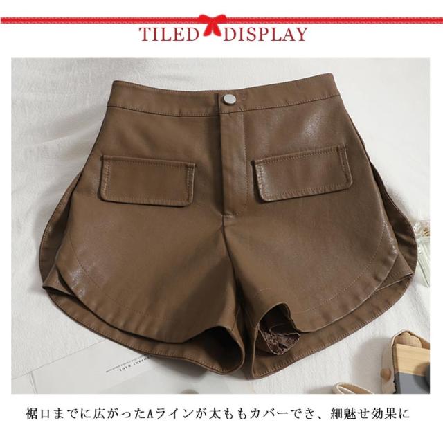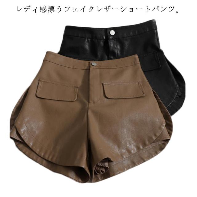 レディース PUレザー ショートパンツ ハイウエスト 短パン ショーツ ホットパンツ ボトムス ショーツ ワイドシルエット aライン フレアパンツ カジュアル キュート 大人 可愛い 大人 女子 フェミニン おしゃれ お出かけ