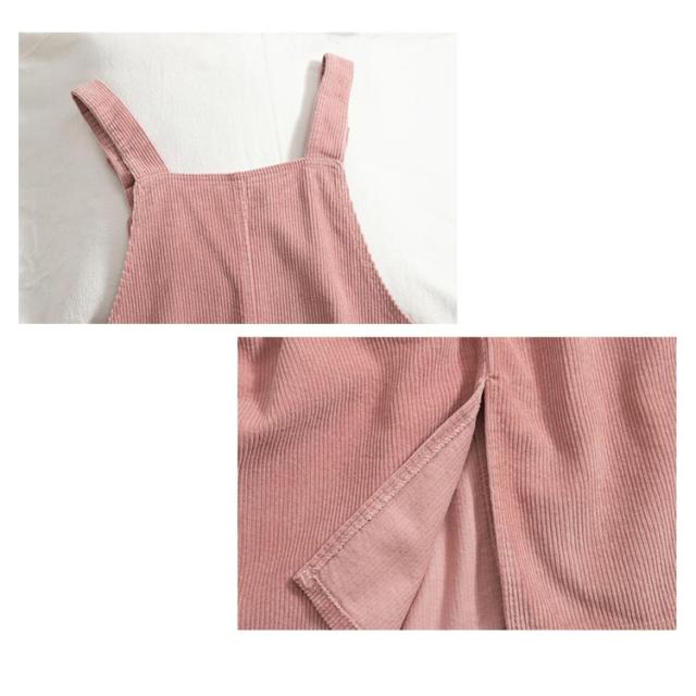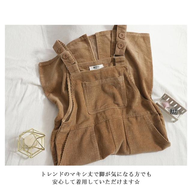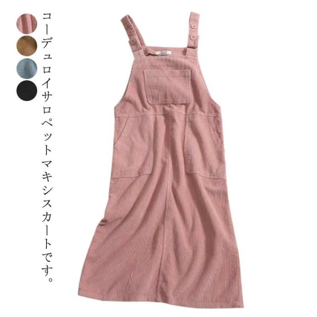 レディース コーデュロイサロペットスカート ワンピース ワンピ スリット入り コーデュロイワンピース サロペットワンピース マキシ コーデュロイ ポケット 3つ 送料無料