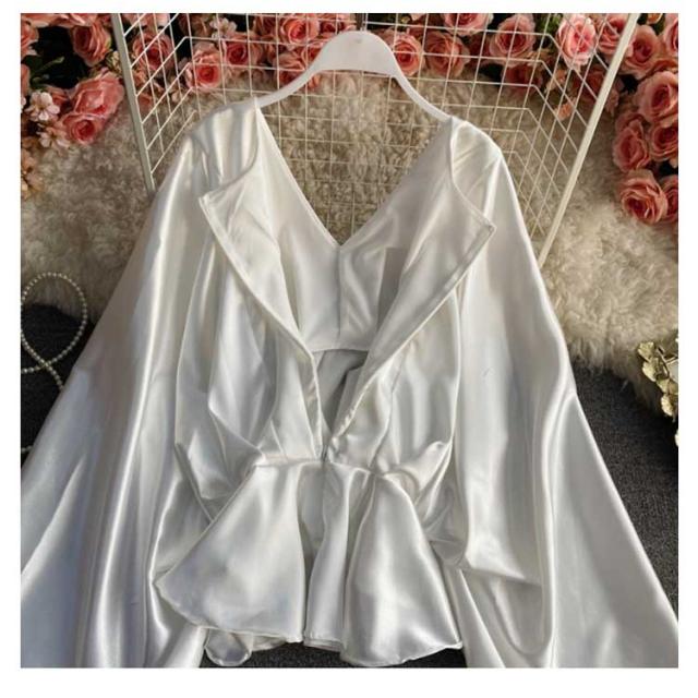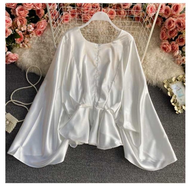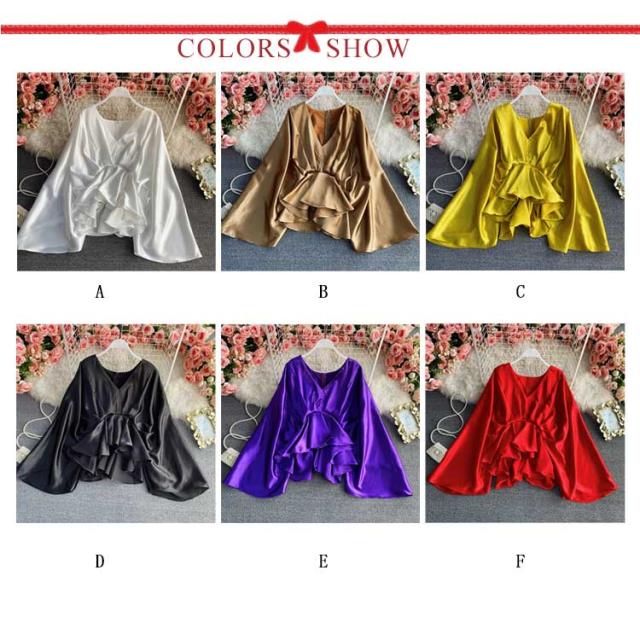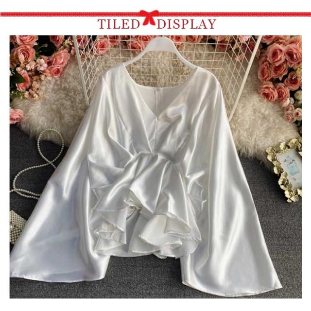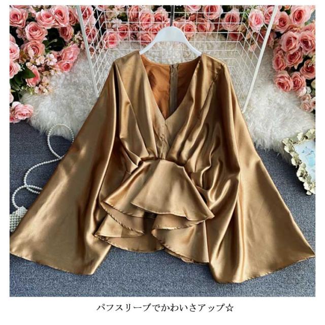 | 大人フェミニンなフリルブラウス。 パフスリーブでかわいさアップ☆ vネックでフェイスラインをすっきり綺麗にみせてくれます◎ | |