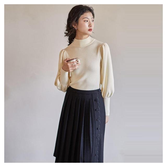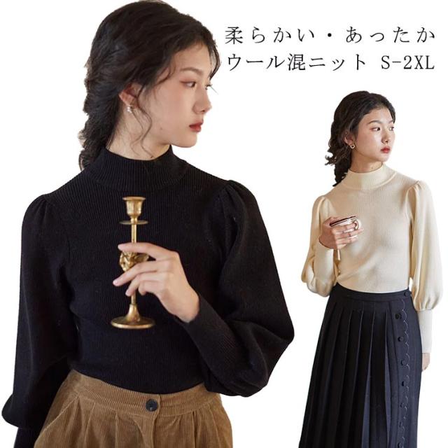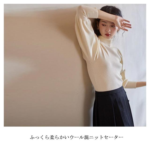 ニット セーター ウール混 レディース トップス 長袖 秋冬 ハイネックセーター おしゃれ 無地 ショート丈 ウールニット フォーマル カジュアル リブセーター 防寒 暖かい 綺麗に 柔らかい 春