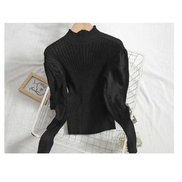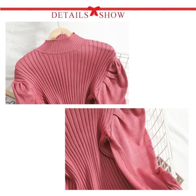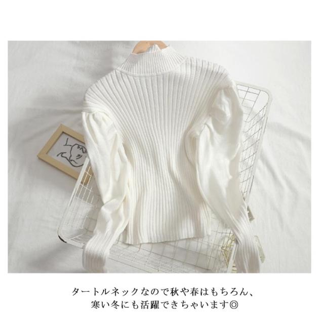タートルネックニット パフスリーブニット レディース パフスリーブ 長袖 セーター カラー シンプル 着まわし カットソー トップス ゆったり 春秋 春服 秋冬 秋服