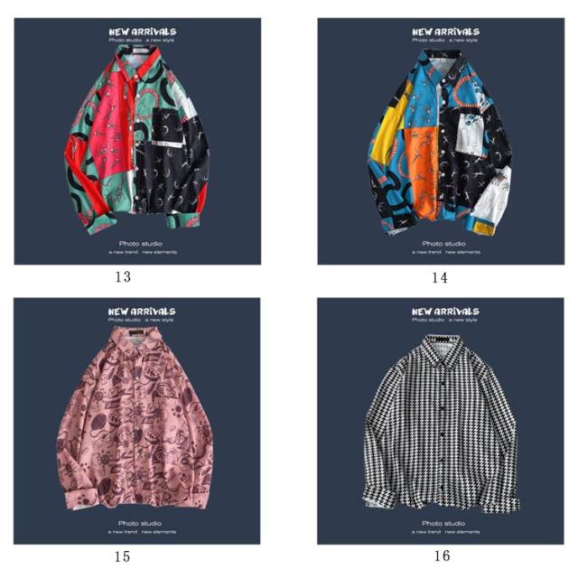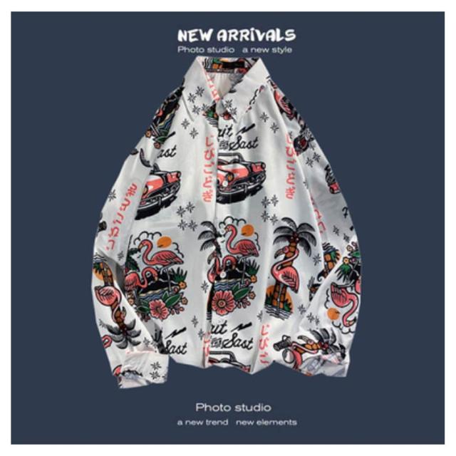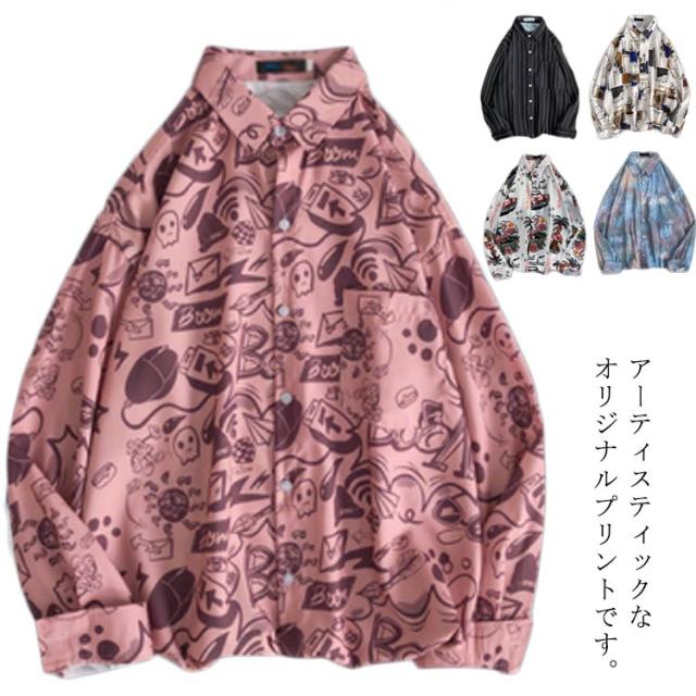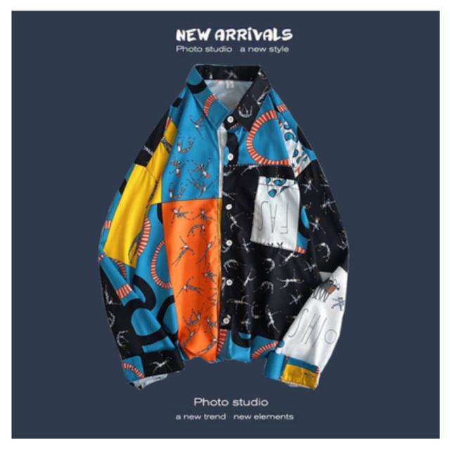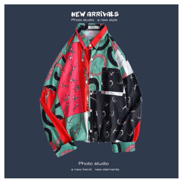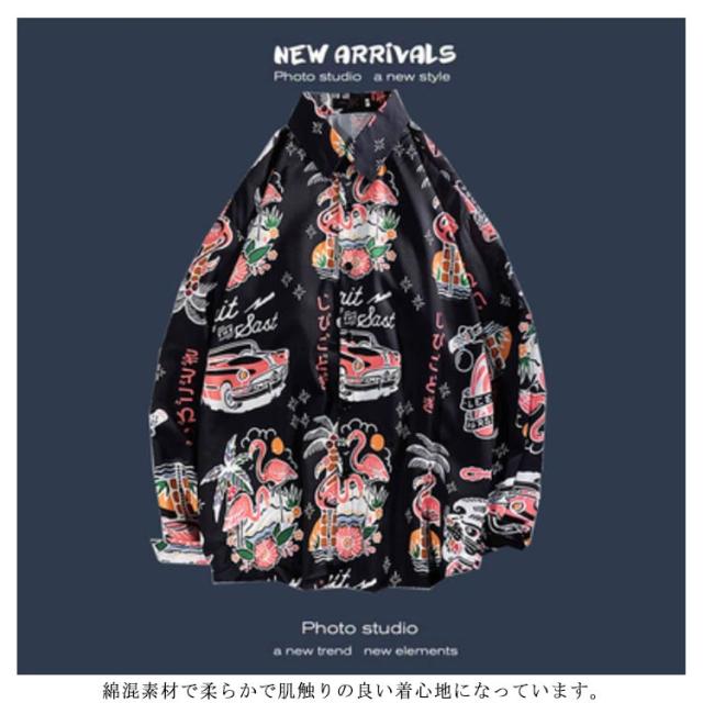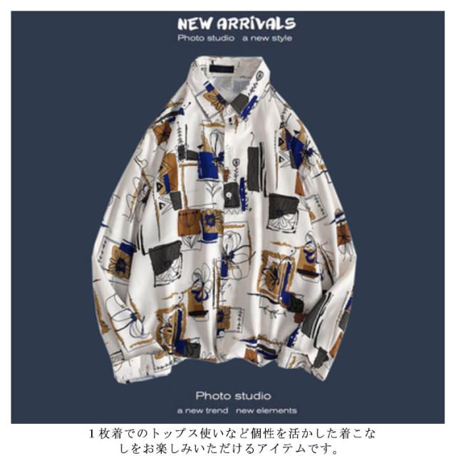 シャツ メンズ カジュアルシャツ メンズ 長袖 トップス 男性用 ワイシャツ Yシャツ 前ボタン 前開き 花柄 パッチワーク 柄シャツ おしゃれ ボヘミアンズ