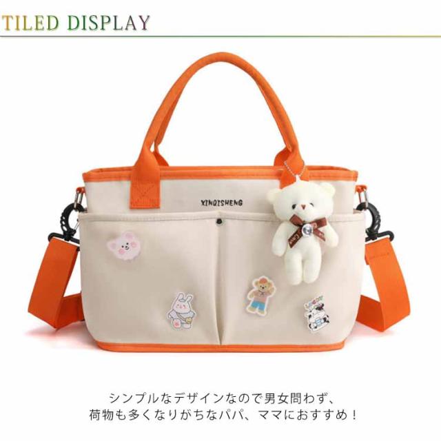 | キャンバス生地で仕立てられた多機能トートバック。 マザーズバッグや旅行、ジム用など幅広く使えるたっぷりの大容量。 たくさんポケットが付いているので、荷物の整理整頓にとっても便利です。 取外し可能なカラビナも付いているので簡単にベビーカーに取り付けることが出来ます。 仕切りもファスナー仕様で簡単に取り外し可能、アレンジも自由自在。 クマちゃんのぬいぐるみが可愛さをたくさん詰まりました。 お子様の着替えなどもまとめて収納。ペットボトルホルダー、仕切りなど便利な仕様が盛りだくさん。 シンプルなデザインなので男女問わず、荷物も多くなりがちなパパ、ママにおすすめ! | |