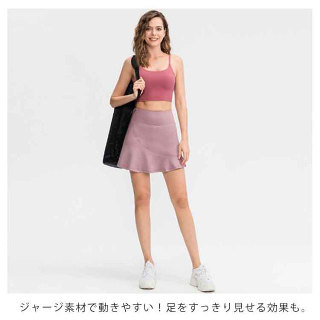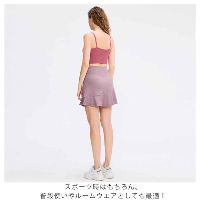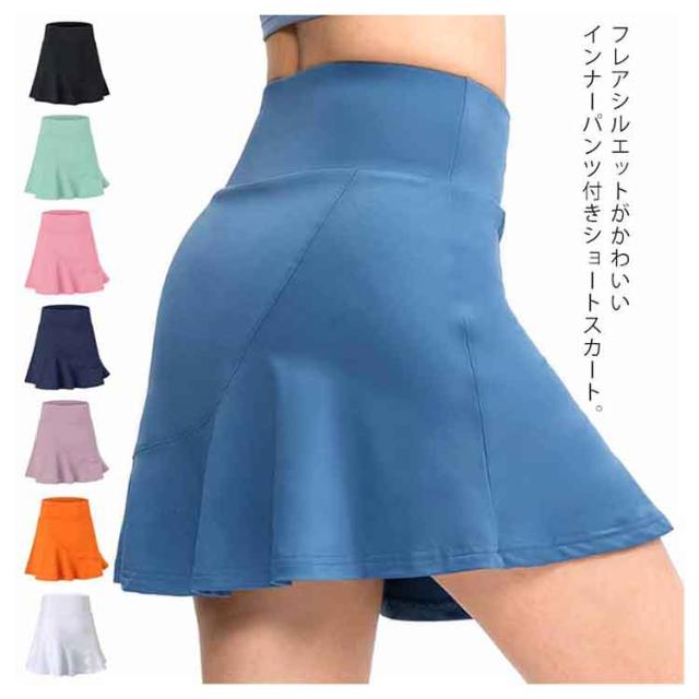 インナーパンツ付き ショートスカート ヨガ スカート レディース ヨガウェア フレアスカート 吸水 速乾 伸縮性 レイヤード 重ね着 ストレッチ 美脚 ゴルフ テニス ランニング ジム トレーニング ダンス フィットネス おしゃれ 演出用 練習着 ヨガ服 送料無料