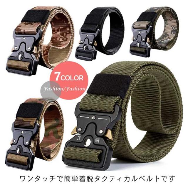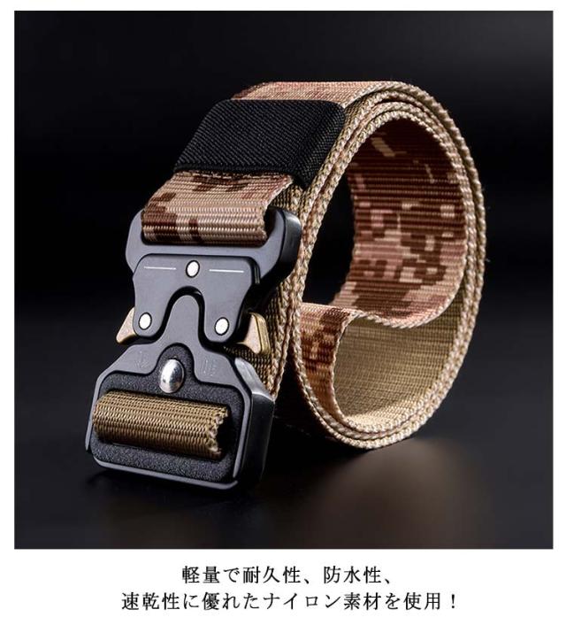 タクティカルベルト サバイバル サバゲー ミリタリー アーミー 陸軍 自衛隊 アウトドア 穴なし ナイロンベルト メンズ レディース 迷彩 ブラック ワンタッチ