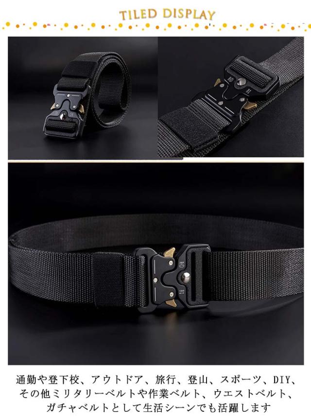 | ワンタッチで簡単着脱タクティカルベルトです。 金属製のバックルが容易な着脱を可能に耐久性、実用性優れています。 軽量で耐久性、防水性、速乾性に優れたナイロン素材を使用! 雨天時でのゲームでも状況を維持できます! 通勤や登下校、アウトドア、旅行、登山、スポーツ、DIY、その他ミリタリーベルトや作業ベルト、ウエストベルト、ガチャベルトとして生活シーンでも活躍します。 | |