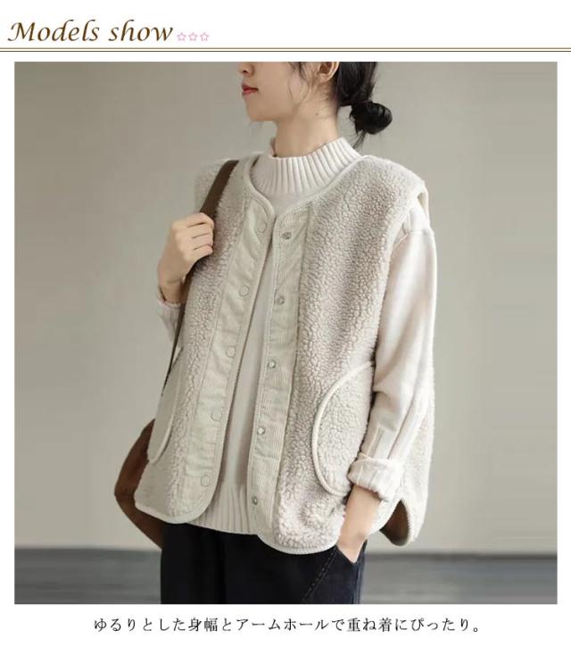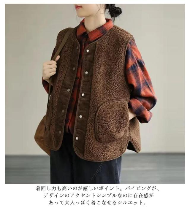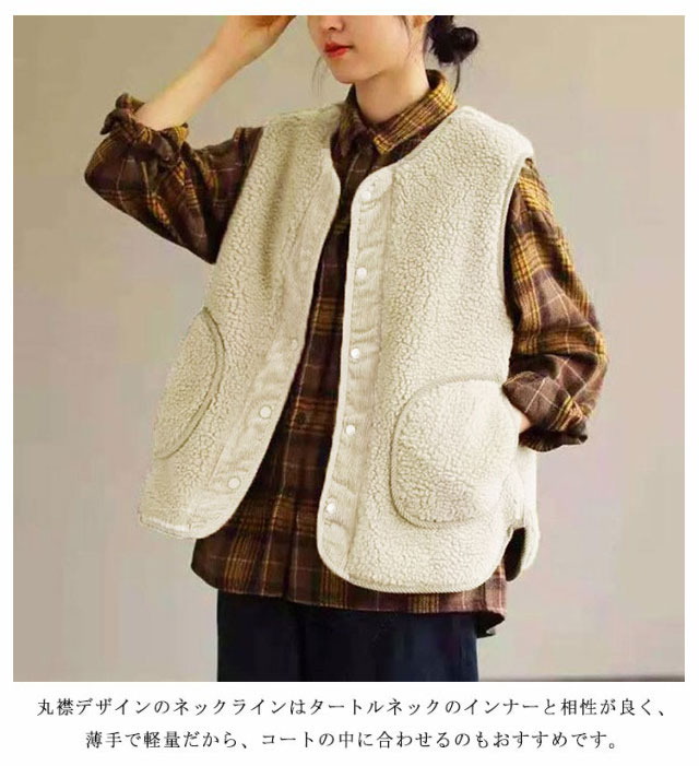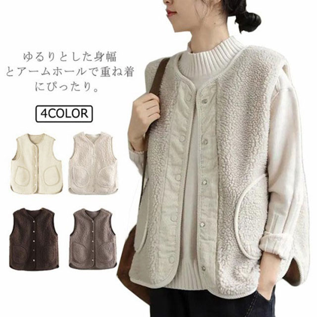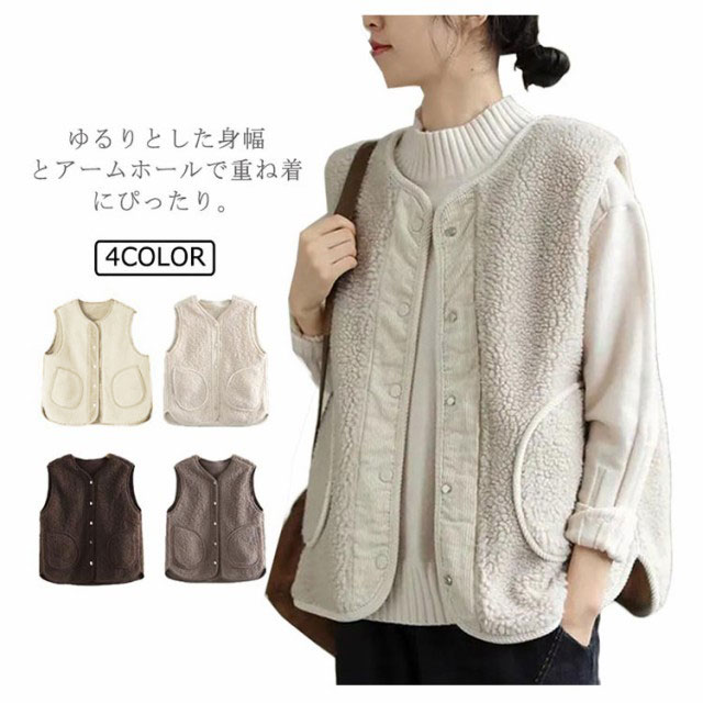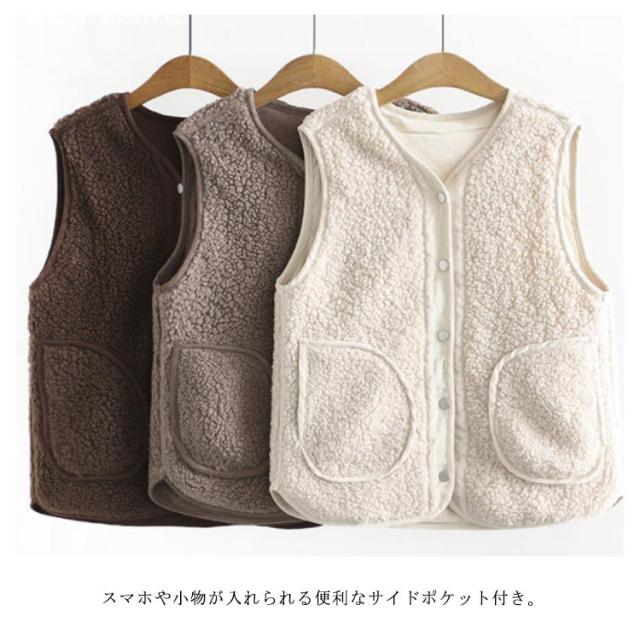 ボアベスト 2way リバーシブル ボア ノースリーブ 袖なし ジャケット ボアアウター レディース トップス 冬 秋 重ね着 大きいサイズ 厚手 エコファー 軽量 防寒 無地 前開き 通勤 ポケット付き シンプル 大人