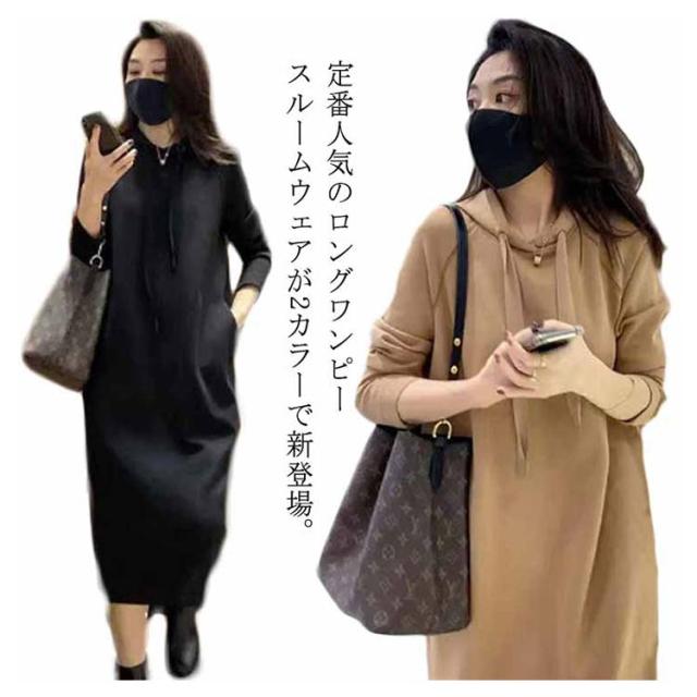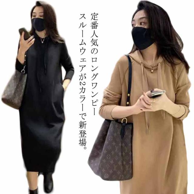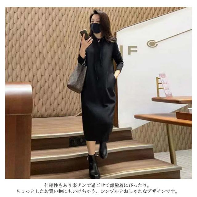 パーカーワンピ フードワンピース ロングワンピース パーカー ルームウェア レディース トレーナー プルオーバー 長袖 部屋着 大きいサイズ ゆったり スウェット 高見え きれいめ 脚長効果 美脚効果 春 夏 秋 冬 無地 選べる6サイズ展開